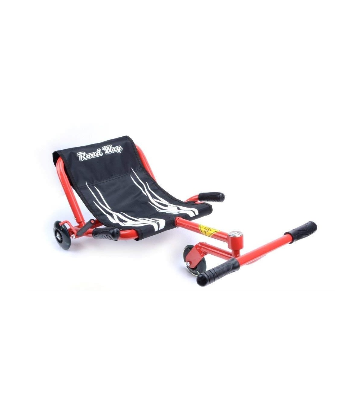 Patinete con silla para juegos de movimiento, sin pedales ni volante. Cuenta con manillares laterales, forradas con plástico de calidad para un mejor agarre, y posa pies para aplicar fuerza e iniciar el movimiento tipo zig zag. Roadway en color rojo, asiento color negro, cómodo, antideslizante y resistente con dibujo de flamas para un acabado deportivo. Ayuda a estimular la psicomotricidad infantil, el equilibrio y a ejercitar el cuerpo.