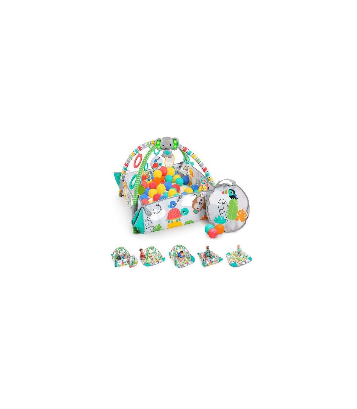Convierte tu salón en una divertida piscina de bolas con la manta de actividades y piscina de bolas 5 en 1 de Bright Starts. Con 5 modos de juego, esta manta de actividades se adapta perfectamente a tu bebé, independientemente de su edad o necesidades concretas. Ajusta sus paredes acolchadas para llenarla con 40 coloridas bolas y haz que sea el lugar favorito de tu bebé. Papá y mamá también se lo pasarán en grande disfrutando de momentos de diversión con su bebé y encestando las bolas por el agujero de la malla. A medida que crezca el bebé, él mismo podrá practicar sus habilidades motoras encestando las bolas. Durante sus primeros meses, pon la manta extendida en el suelo para poder tumbar en ella a tu bebé. Incluye un almohadón especial para ello. El animado elefante emite música y luces para captar la atención del bebé. Te encantará su diseño Totally Tropical de tucanes, palmeras y mucho más. Diversión sin fin con sus otros 6 juguetes: colgante, juguete rugoso inspirado en los safaris, espejo para bebés, tarjetas, hojas colgantes y sonajero. ¿A quién no le apetece divertirse con Bright Starts?