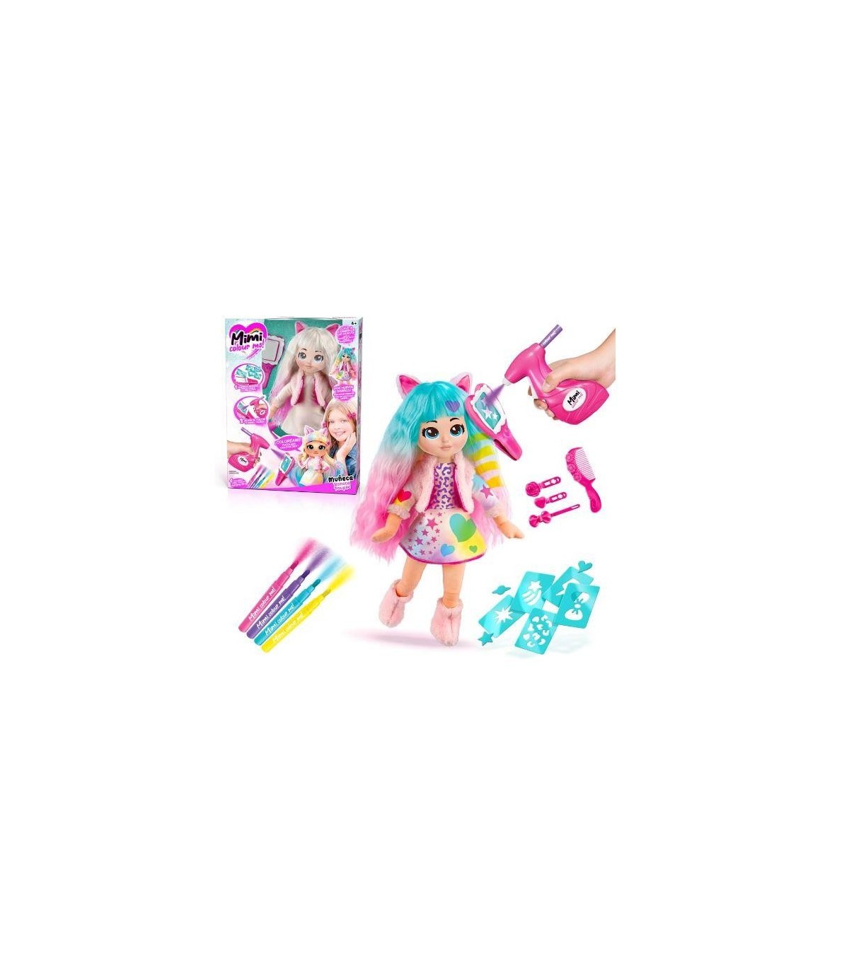 Personalización sin fin: una vez que la muñeca está totalmente decorada, basta con lavarla y a empezar de nuevo. Una actividad divertida: los niños se divertirán coloreando su muñeca con los rotuladores, el spray y las numerosas plantillas incluidas; podrán crear su propio estilo. Airbrush spray: una herramienta práctica y fácil de usar para personalizar todas tus creaciones; funciona con 2 pilas AA/LR6 (no incluidas). Amigable con los niños: todos nuestros productos cumplen la normativa europea sobre juguetes