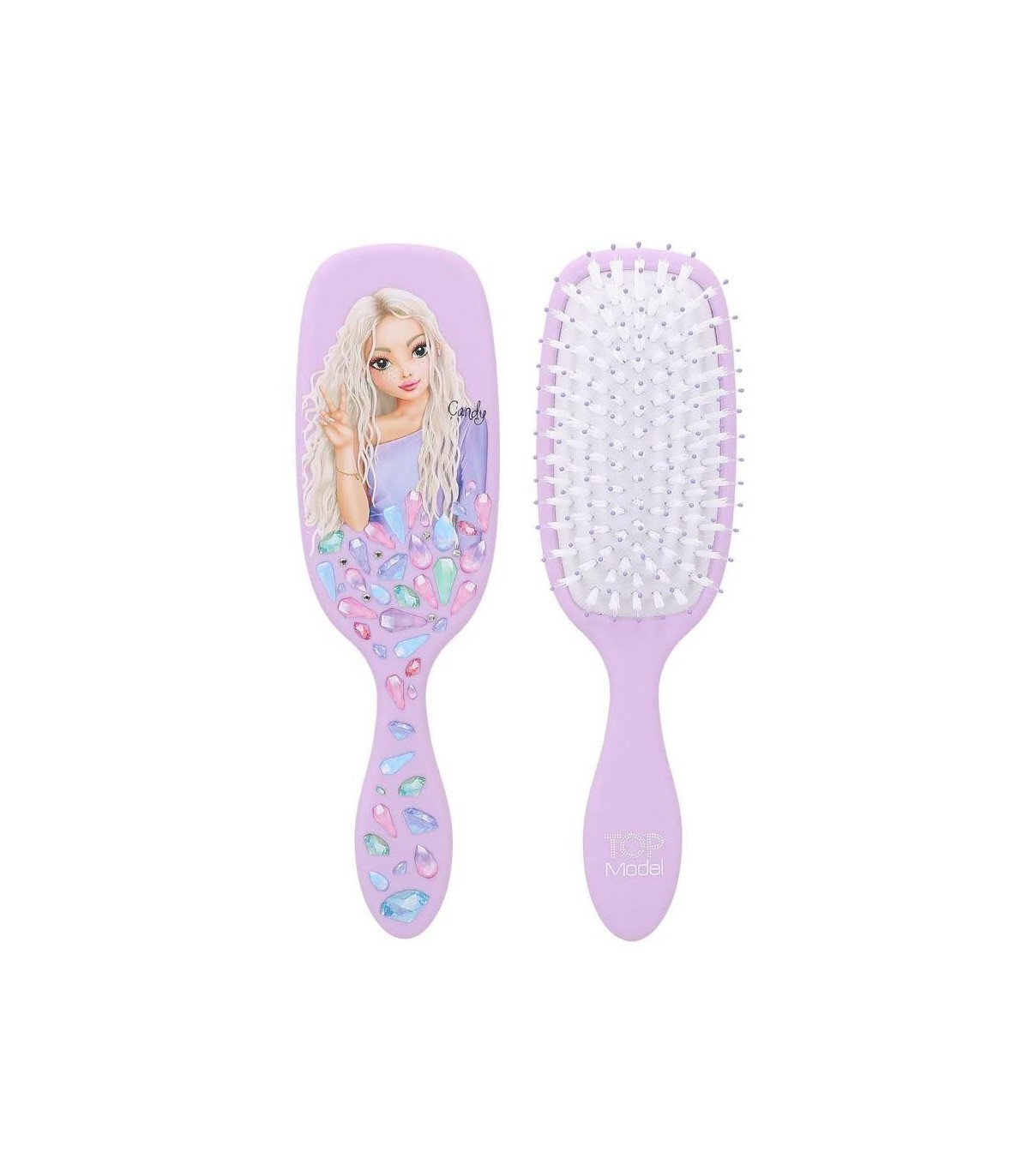 Supermodelos, brillantitos y diseño a la última: los cepillos para el pelo con forma de raqueta de TOPModel en rosa y lila tienen la superficie de goma y son muy suaves y agradables al tacto. La combinación de púas de nailon y de plástico hace que estos cepillos sean adecuados para todos los largos de pelo, aunque están especialmente recomendados para pelo largo.