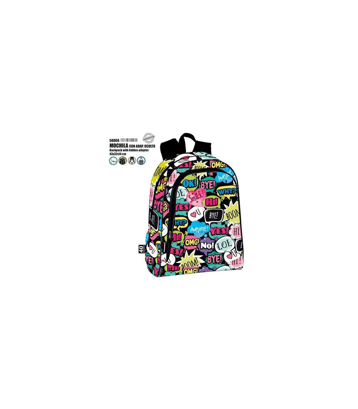 Mochila escolar de 40 centimetros con bolsillo exterior, decorada, adaptable a carro no incluido