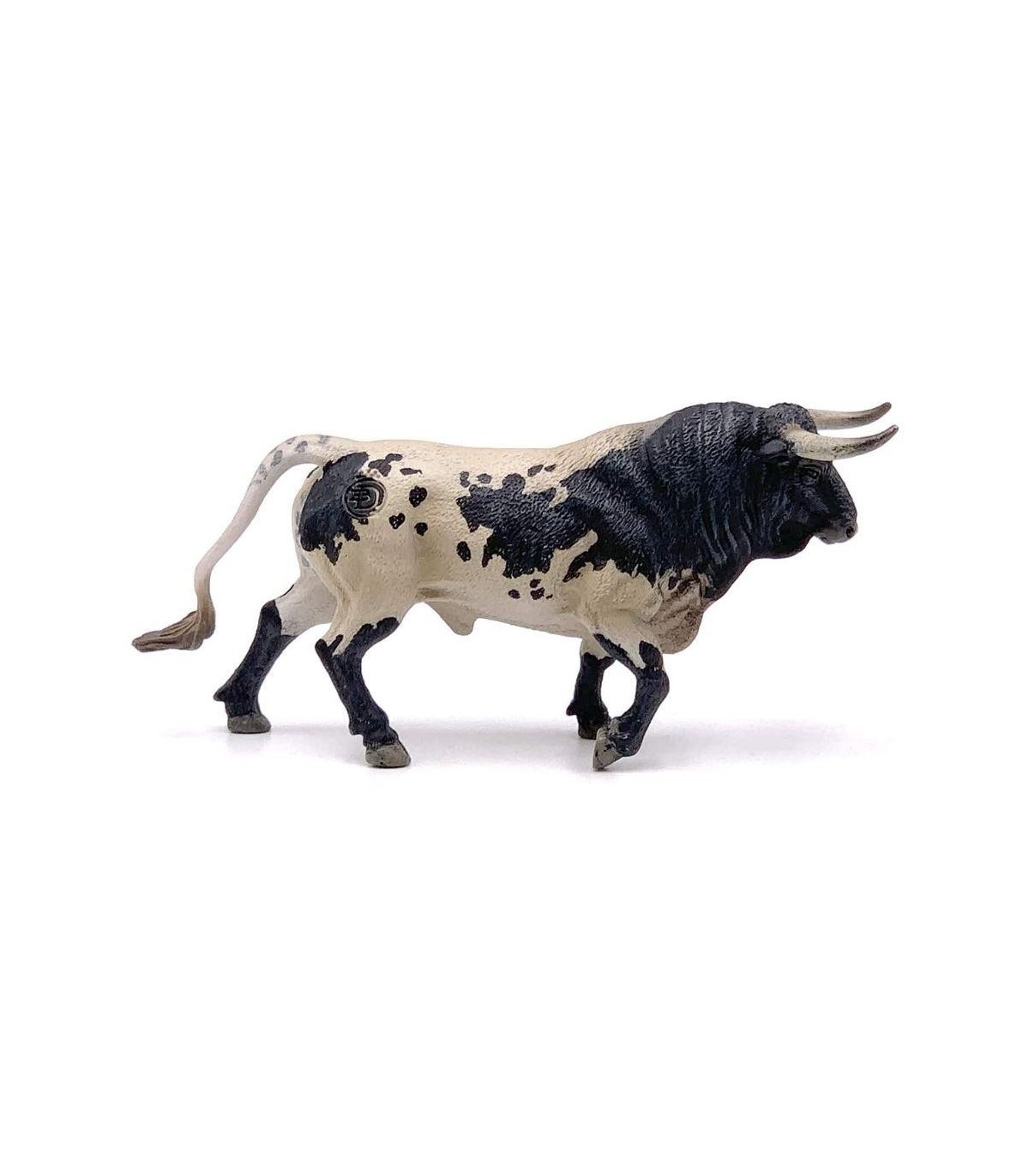 Posición Trotando - Color Berrendo El Toro Bravo, es un bovino proveniente del Uro. Fue el Uro una especie extinta, y se conoció como el toro salvaje del Neolítico. Aunque era una especie más grande que el toro actual, compone el antepasado del ganado bovino. Deqube ha querido rendir homenaje a este bello animal con su representación. Pintado a mano y desarrollando al máximo su trapío en cada detalle; desde la mirada desafiante, el matiz de los pelajes, la morfología de las astas, la musculatura de los lomos hasta la finura de sus patas y su papada discreta. Réplica a escala 1:20 Color Berrendo Pintado a mano Medidas: 17 x 4 x 8,2 cm A partir de 3 años de edad