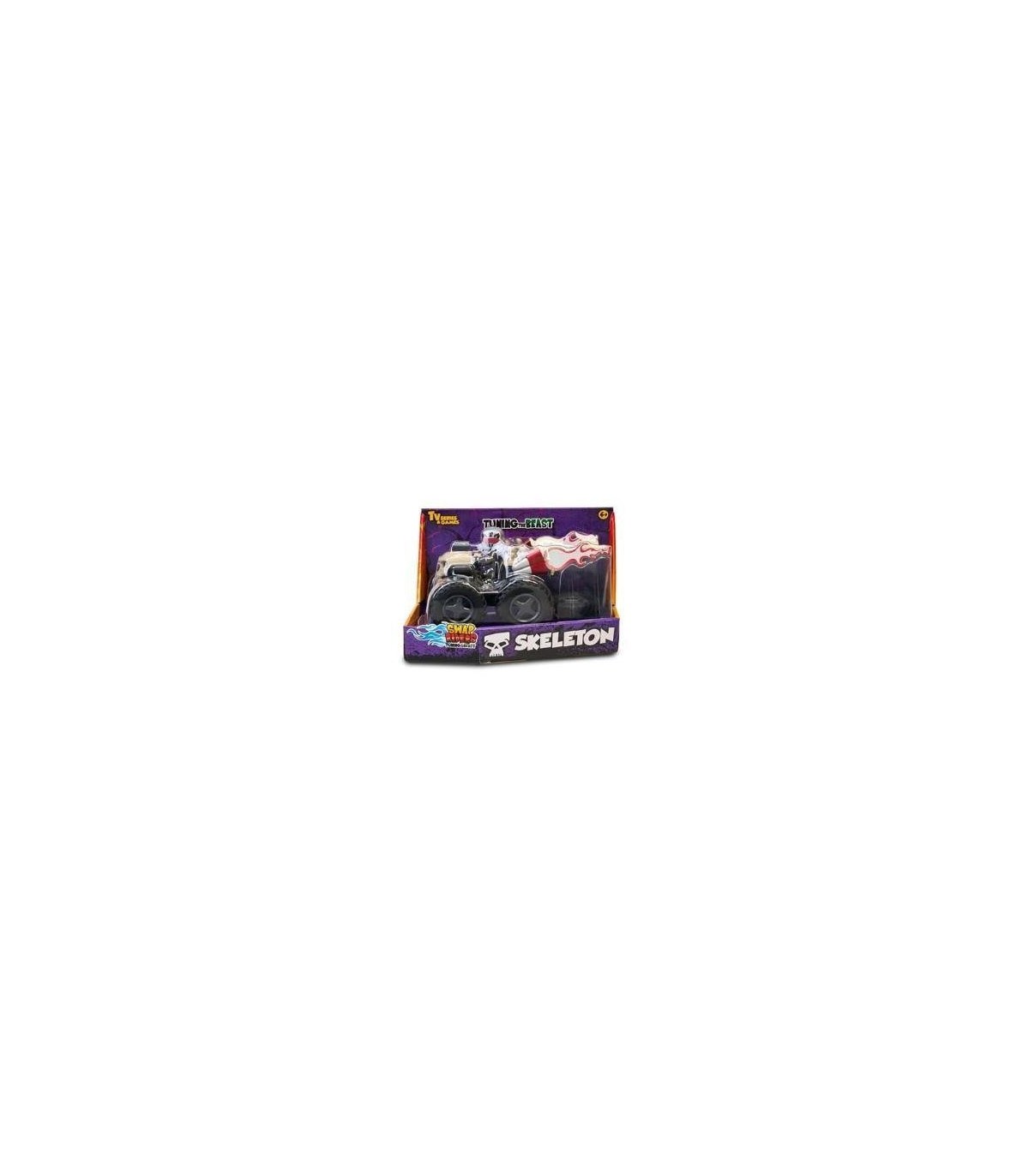 Juega a las carreras más bestias con Swap Riders! Tunea tu Quad Swap Rider y conviértelo en ganador! Surtido de 4 quads differentes con su figura exclusiva de rider y diseños muy bestias: SHARKO el quad tiburón; el dragón DRAK, SKELETON con un look de terror y el monstruoso FRANKI. Tienen más de 12 piezas intercambiables para tunear y crear un montón de combinaciones con piezas delanteras y traseras, los motores, los volantes, el tubo de escape y las llamas de poder. Atractivo packaging abierto.