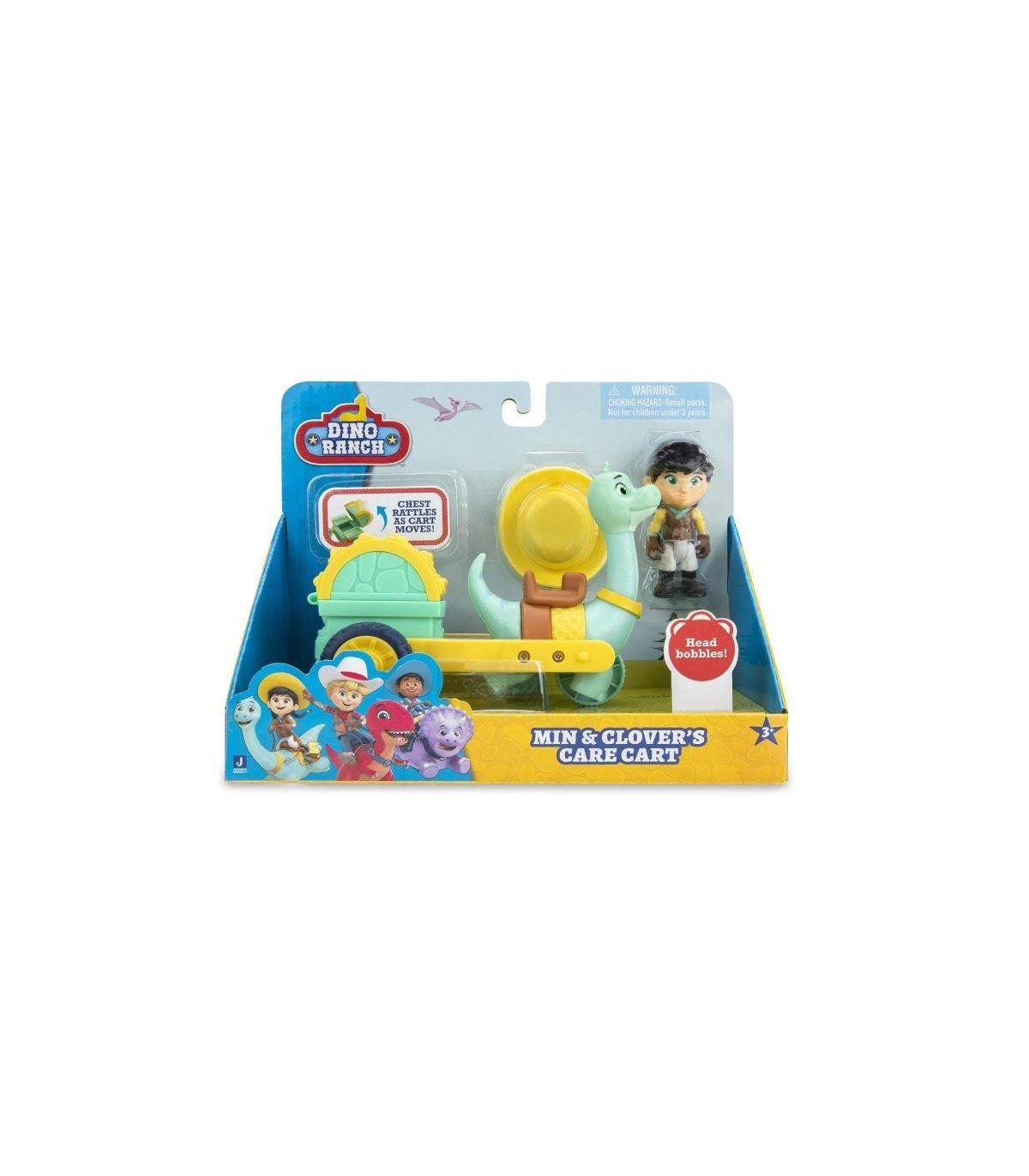 Dino Ranch - Feature Vehicle Clover & Medical, set de juguete coleccionable de la serie de dibujos, con una figura de los personajes, un carro y un dinosaurio, 3 modelos, +4 años, Famosa