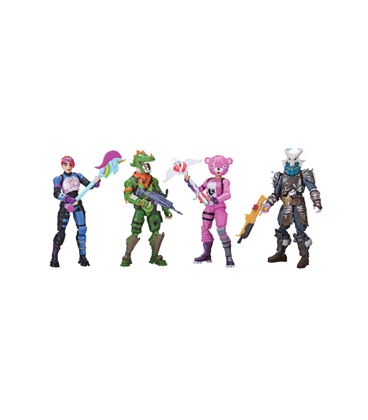 Inventa tu propia historia Fornite inspiradas en cuatro de las más populares máscaras de Fortnite de los Epic Games. Cada figura cuenta con 19 puntos de articulación y una magnífica decoración.