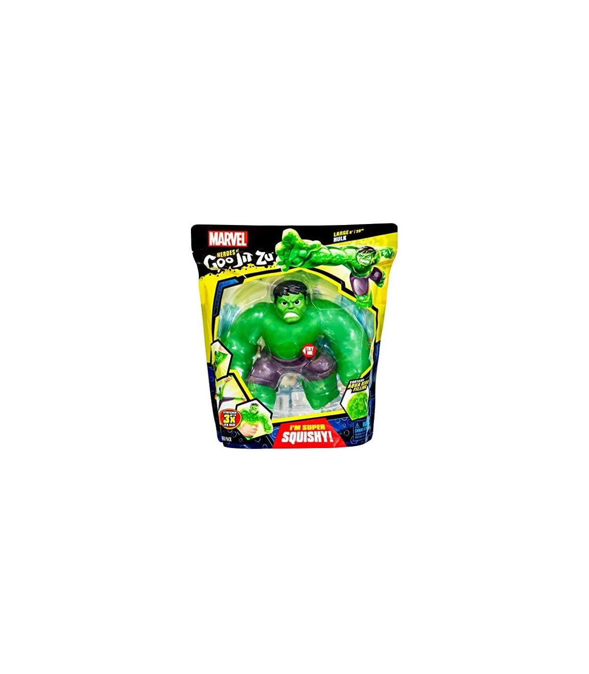 Super Figura individual Superhéroe Goo Jit Zu- Marvel de Hulk El conocido personaje de la masa verde se ha transformado aumentando su tamaño habitual para poder derrotar a todos sus enemigos y salvar el mundo. ¡Un tamaño de más de 20 cm! Gracias a su viscoso relleno verde, se estruja y se estira ¡hasta 3 veces más su tamaño! Vence a todos los villanos con la ayuda del increíble Hulk y ¡desata todo su poder Goo Jit Zu! Colecciona los superhéroes más poderosos del universo Marvel