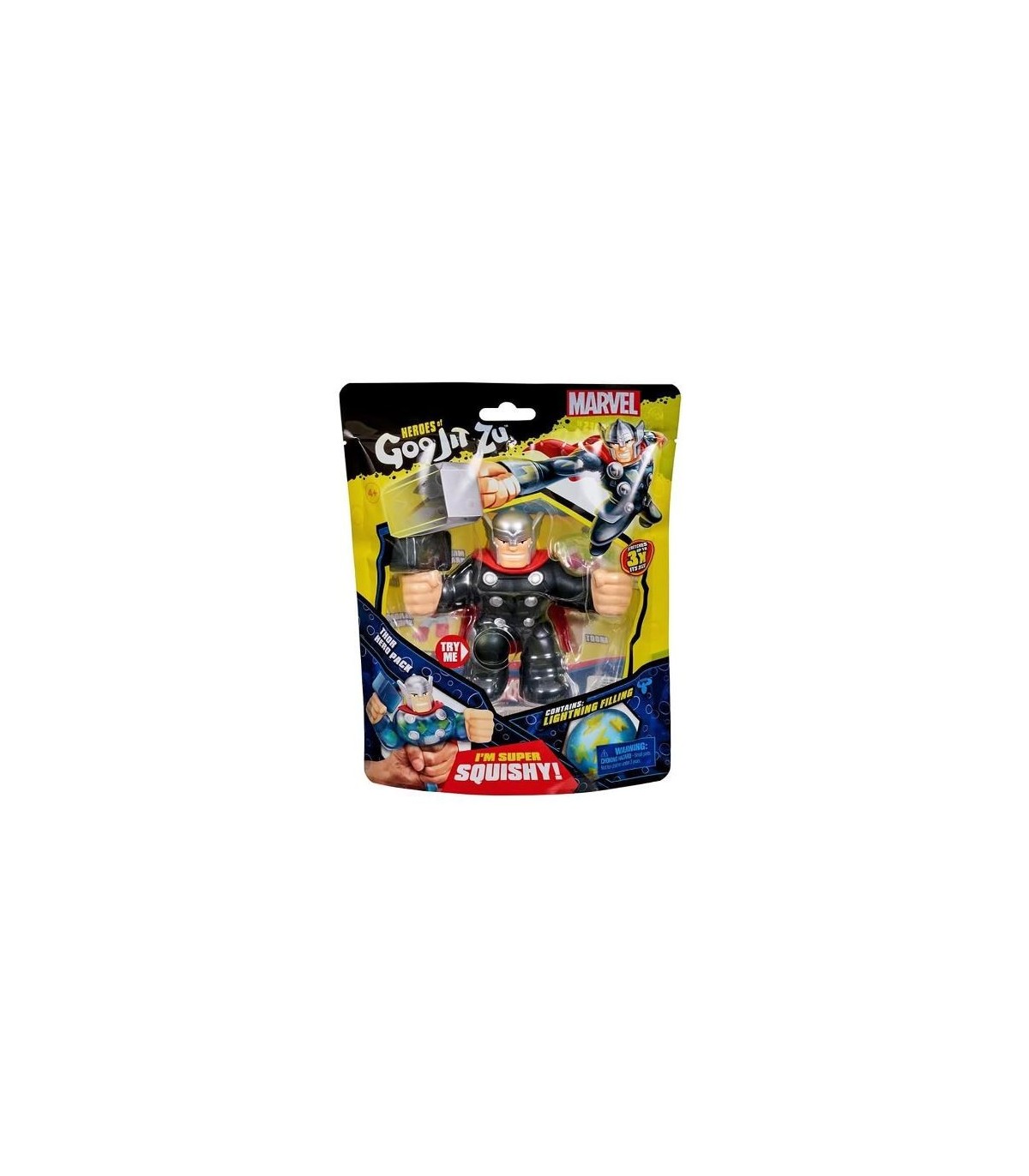 Figura de Thor de la colección de Goo Jit Zu Marvel Poderosos héroes viscosos Se estiran y estrujan hasta alcanzar 3 veces su tamaño Cada héroe tiene un interior viscoso distinto para desatar todo su poder Goo Jit Zu Colecciona los superhéroes más poderosos del universo Goo Jit Zu