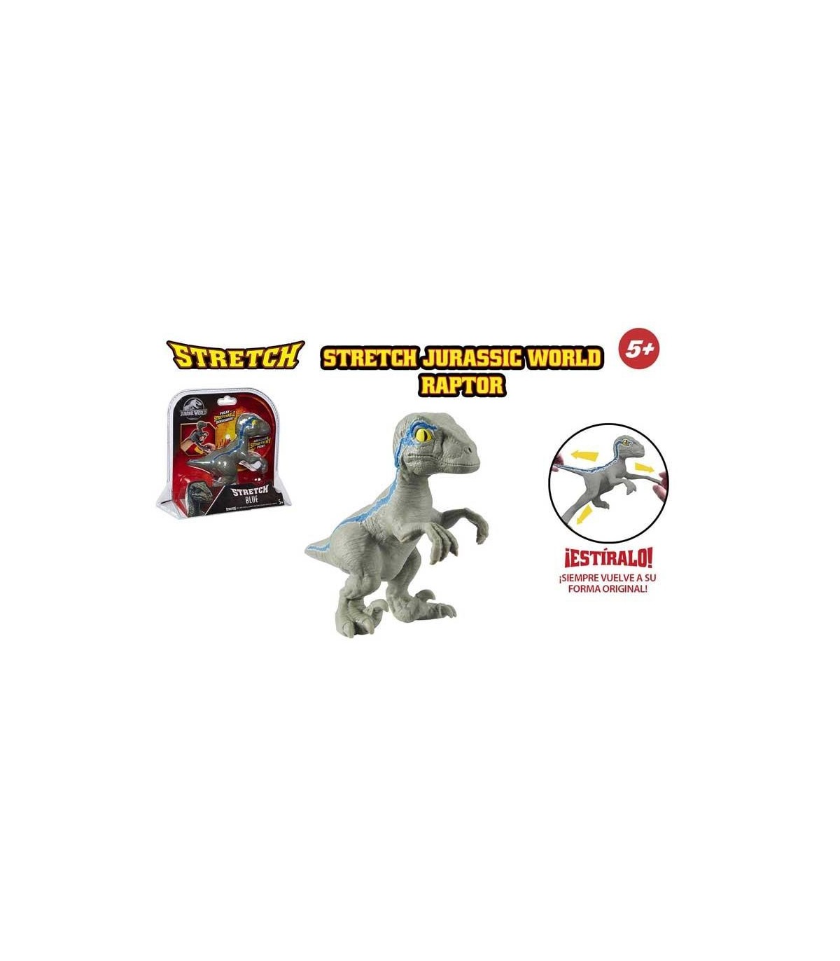 Llegan los muñecos de la línea Stretch de un temible dinosaurio sacado de las películas Jurassic World Muñeco elástico de un dino Raptor con increíbles características que los más pequeños disfrutarán Se pueden estirar hasta 4 veces su tamaño, retorcer o estrujar de todas las formas y vuelve a su forma original Tuerce los brazos, las piernas y el tronco de los muñecos. Conoce todas las colecciones de Stretch