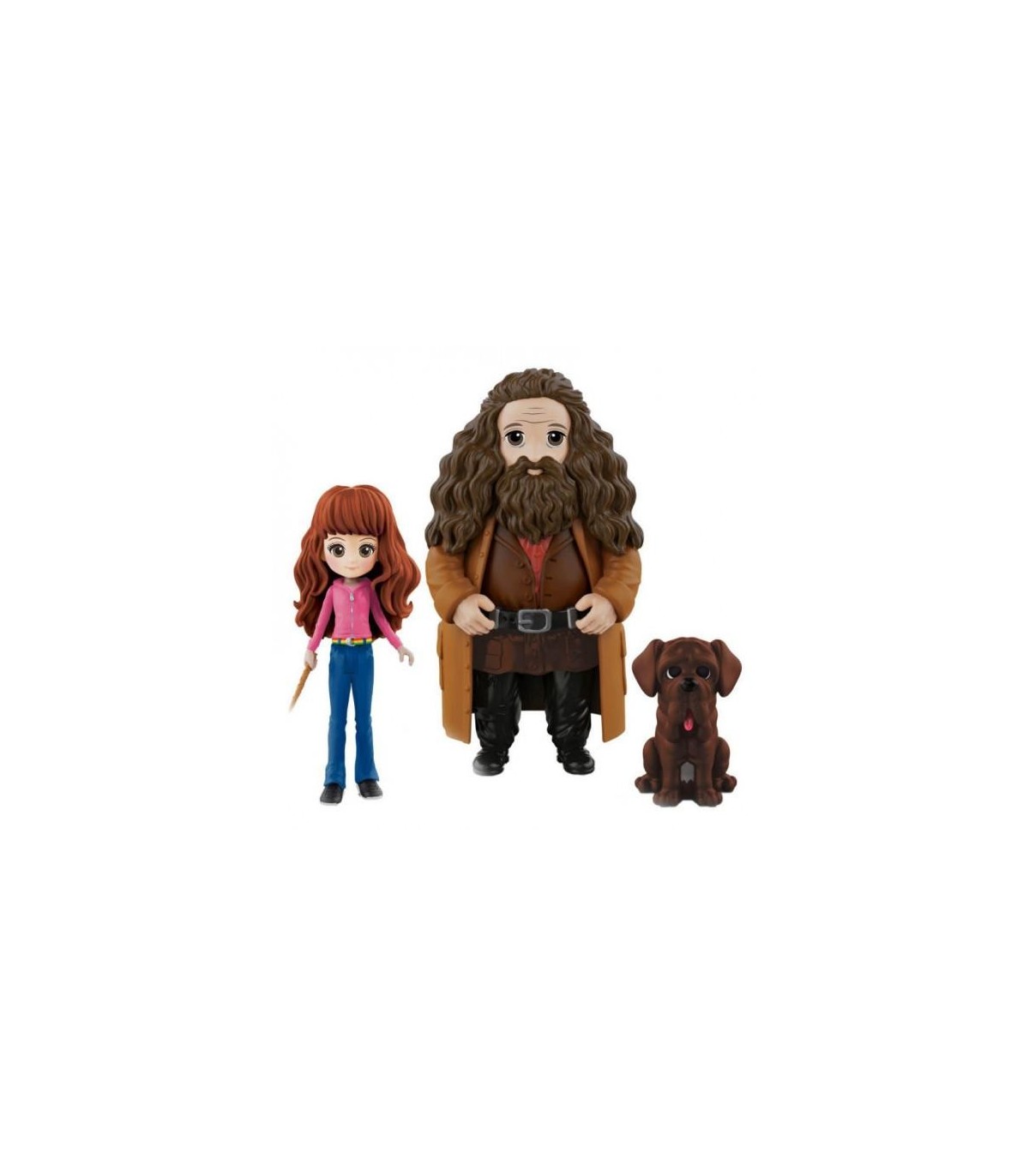 Este pack contiene 2 figuras exclusivas; una muñeca Hermione Granger de 8 cm que viste su ropa del Prisionero de Azkaban y un muñeco de Hagrid de 10 cm. Ambos son articulados: gira la cabeza, mueve los brazos y haz que se sienten