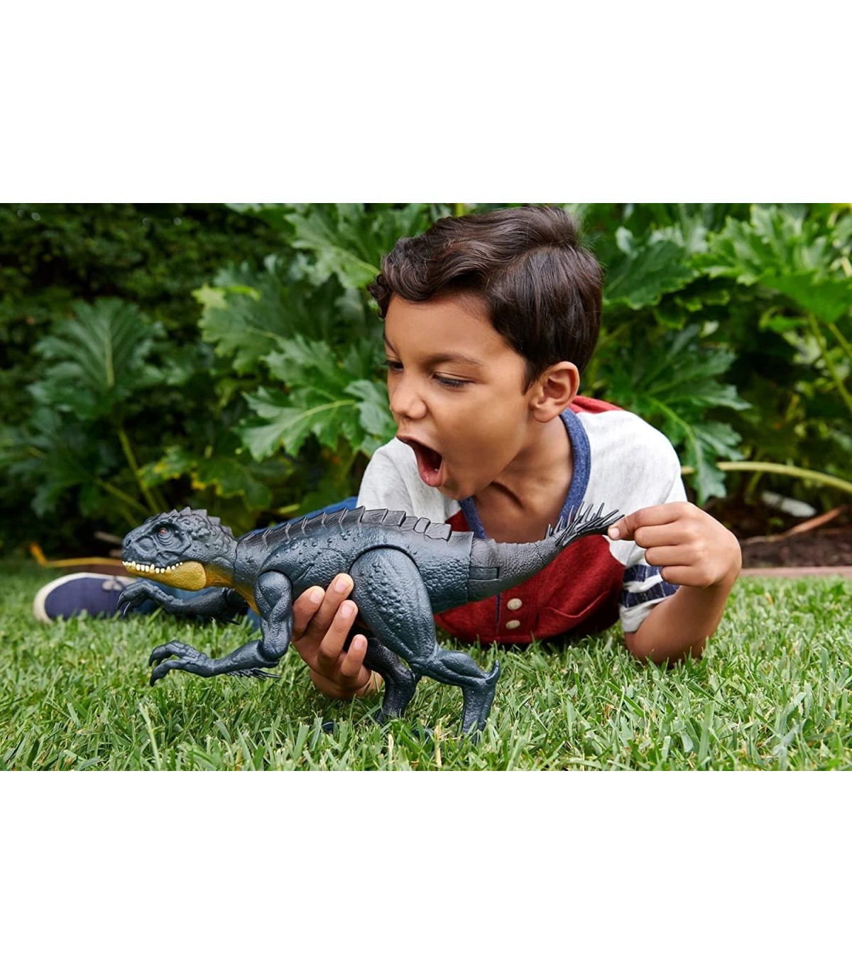 Scorpios Rex corta y lucha es el dinosaurio hibrído que siembra el caos. Inspirado en Jurassic World: Capamento Crétacico, este dinosaurio desatará el terror con sus garras y venenosos latigazos con la cola. Tiene un botón para extender las carras y dar zarpazos, ¡Cuidado! también da mordiscos y emite un feroz rugido. Medidas: 43 cm largo. Edad recomendada + 4 años. No recomendable para menores de 3 años, ya que contiene piezas pequeñas que podrían provocar asfixia en caso de ser ingeridas por el niño/a.