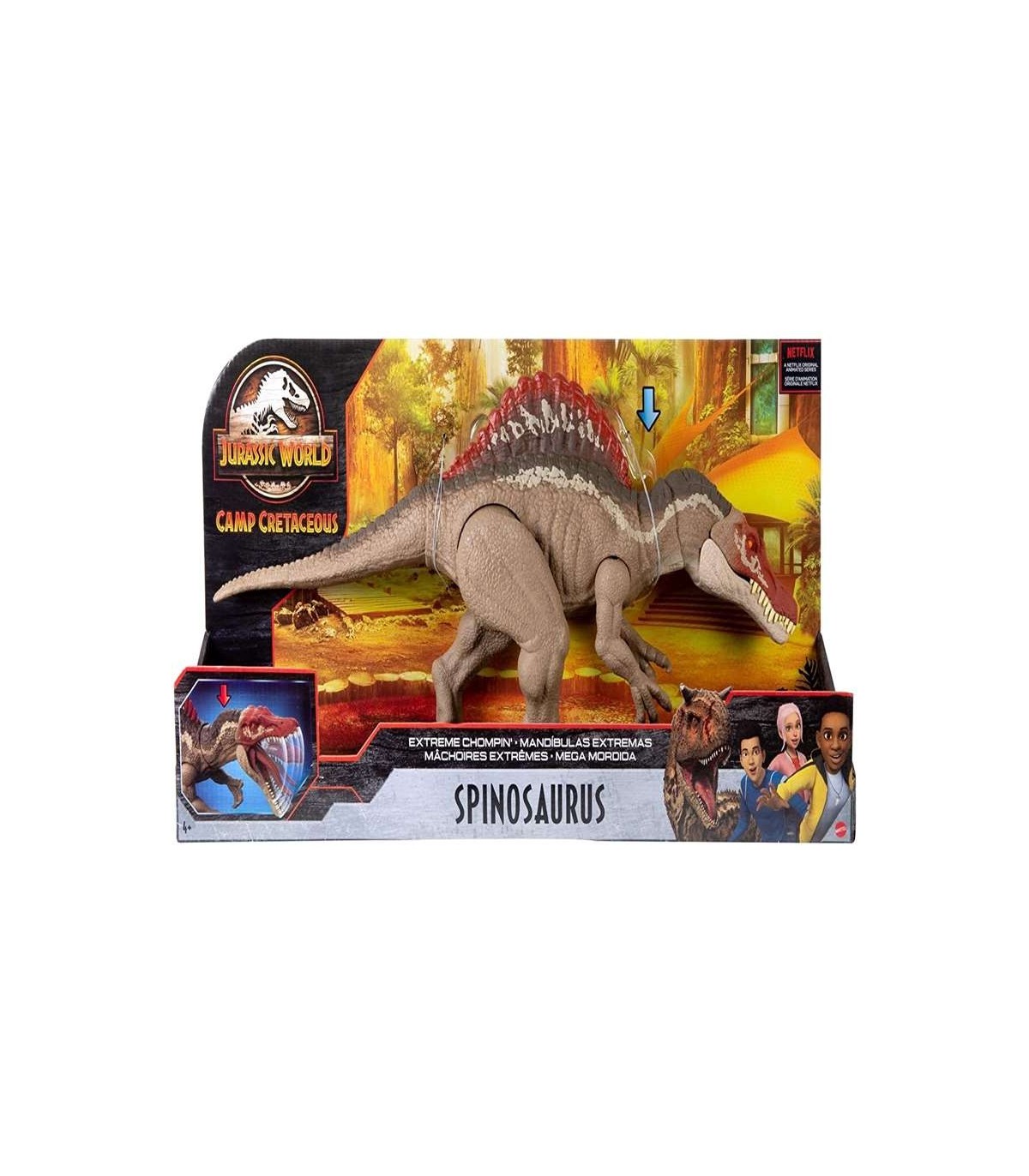 ¡Forma parte de las aventuras de Jurassic World reproduciendo las rivalidades y los combates definitivos entre dinosaurios! Esta enorme figura de acción de dinosaurio Massive Biters™ de Jurassic World incluye el nuevo «ataque feroz», que permite a los niños y niñas controlar la batalla al activar estos increíbles movimientos: mueve la cola de lado a lado para que mueva la cabeza, mueve la cola hacia arriba y hacia los lados para que gire el cuerpo y mueve la cola para que dé mordiscos. También puedes activar todos los movimientos al mismo tiempo para un control animado total de la figura. ¡También puedes apretar el botón que hay en la cola para que abra y cierre la boca y darle más emoción a la batalla!