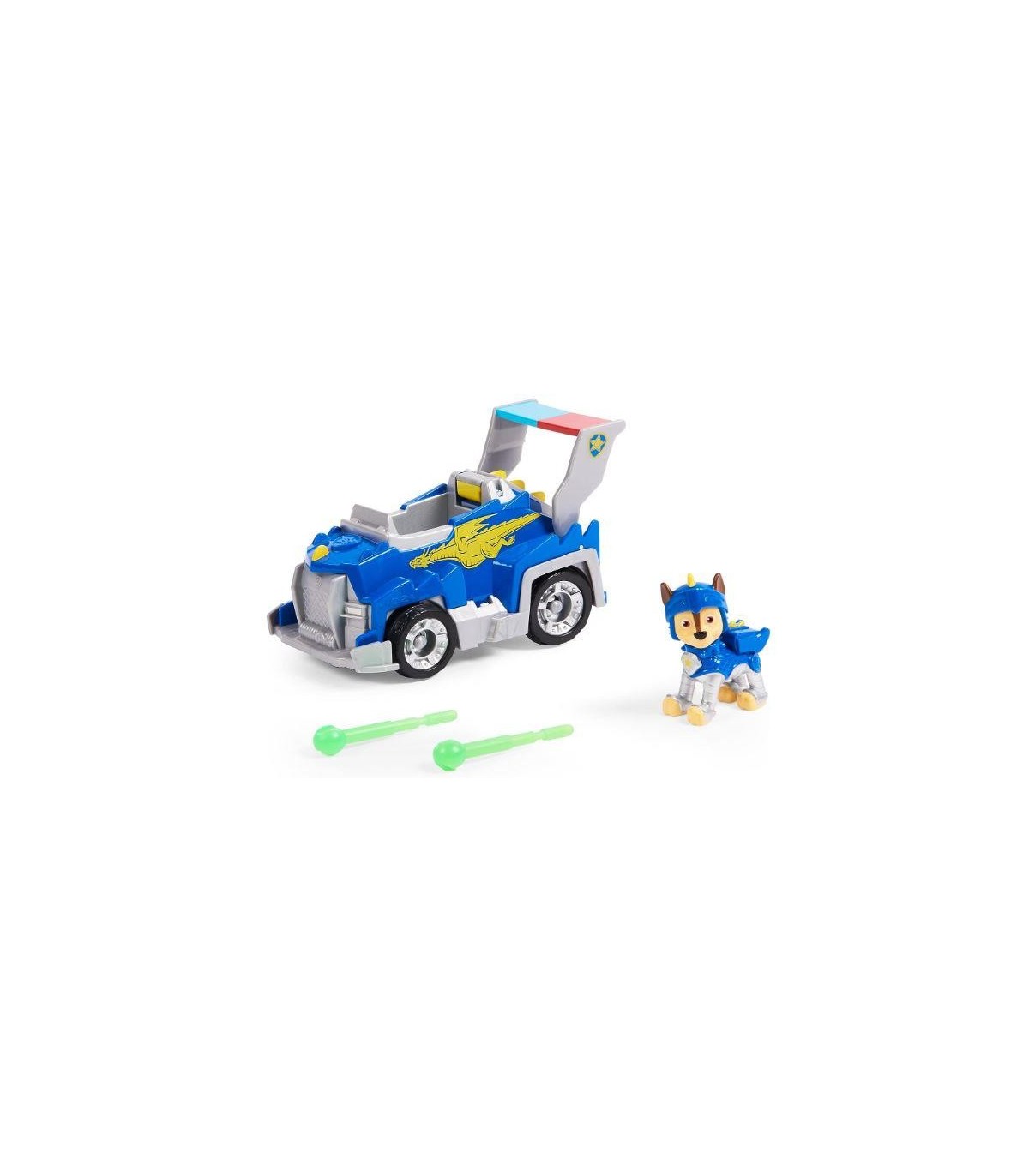 Coche Rescue Knights transformable con figura Chase Únete a tu cachorro favorito Chase de la Patrulla Canina en emocionantes misiones con su coche transformable de Rescue Knights. Este coche único viene con una figura coleccionable de Chase y está listo para acudir al rescate de Barkingburg. Si su amigo dragón está en apuros, coloca a Chase detrás del volante y corre al rescate. Presiona el alerón y verás cómo el lanzador salta hacia delante. Cárgalo con los proyectiles (dos incluidos) y pulsa el botón para lanzarlos. Colecciona todos los coches de Caballeros de la Patrulla Canina (cada uno se vende por separado) y vive emocionantes misiones de rescate. A partir de 3 años.