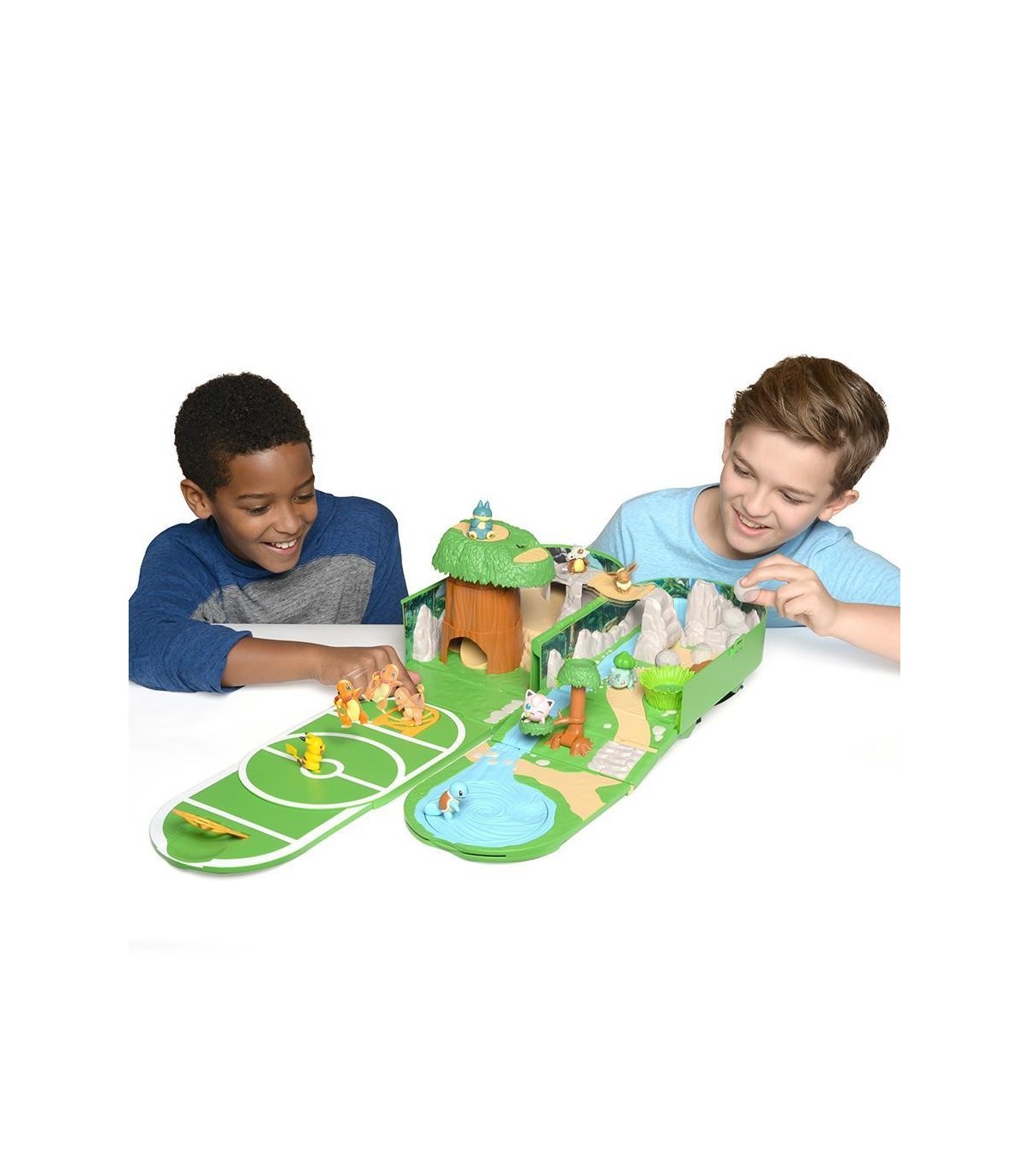 Crea los escenarios de la serie Pokemon con esta fantástica mochila del mundo de Pokemon que podrás llevar a cualquier sitio. ¡Mira cómo se transforma en un mundo Pokemon! Es un playset transformable con todo lujo de detalles y con 6 zonas diferentes de juego: área de batalla, un lago, una casa del árbol, área de rocas, un puente, y un árbol. ¡Diversión sin fin! Contenido del set: 1 mochila, 1 figura. Edad recomendada: +4 años. No recomendable para menores de 3 años, ya que contiene piezas pequeñas que podrían provocar asfixia en caso de ser ingeridas por el niño/a.