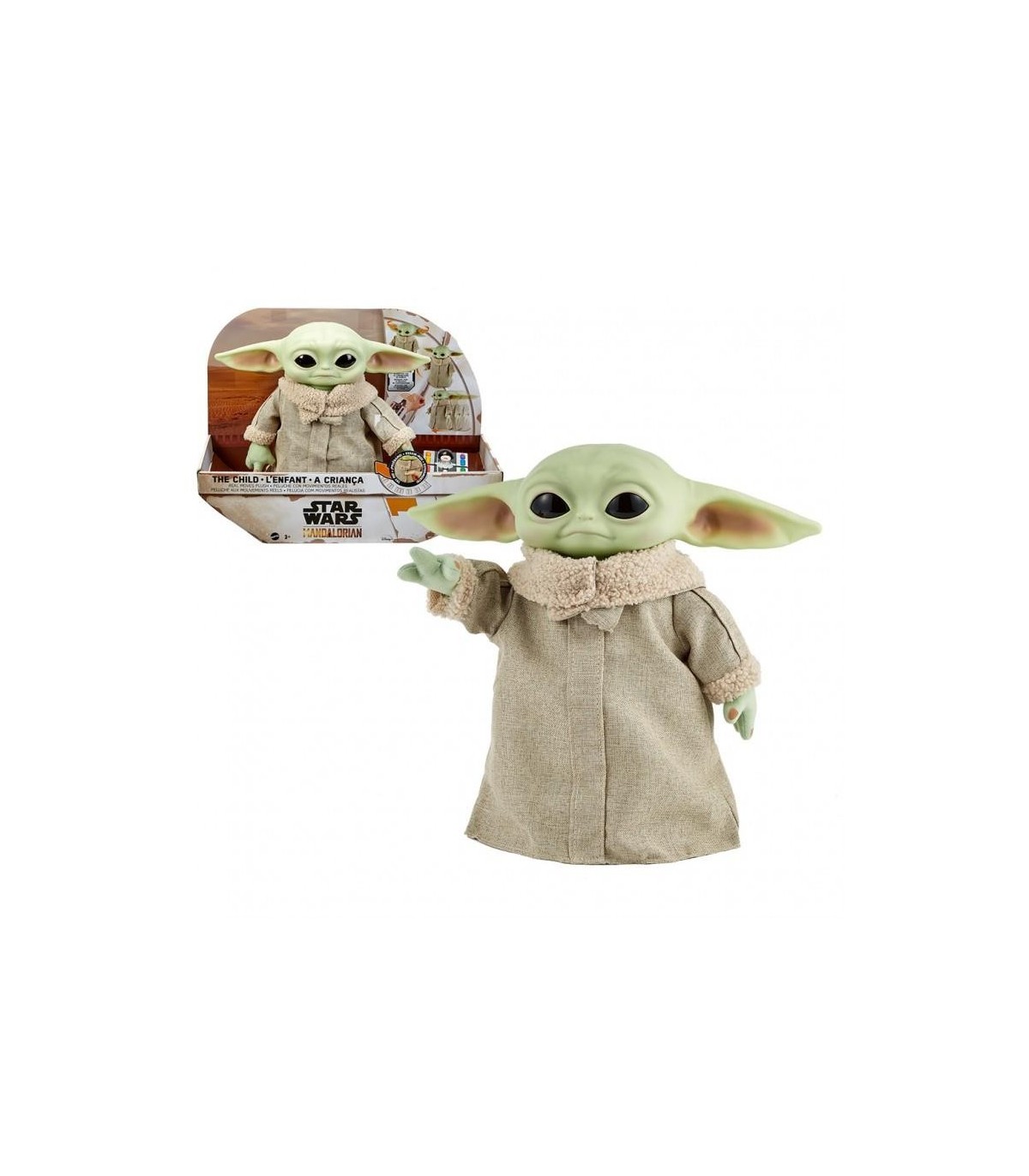 el divertido personaje baby yoda ahora con funciones electronicas desde su mando a distancia
