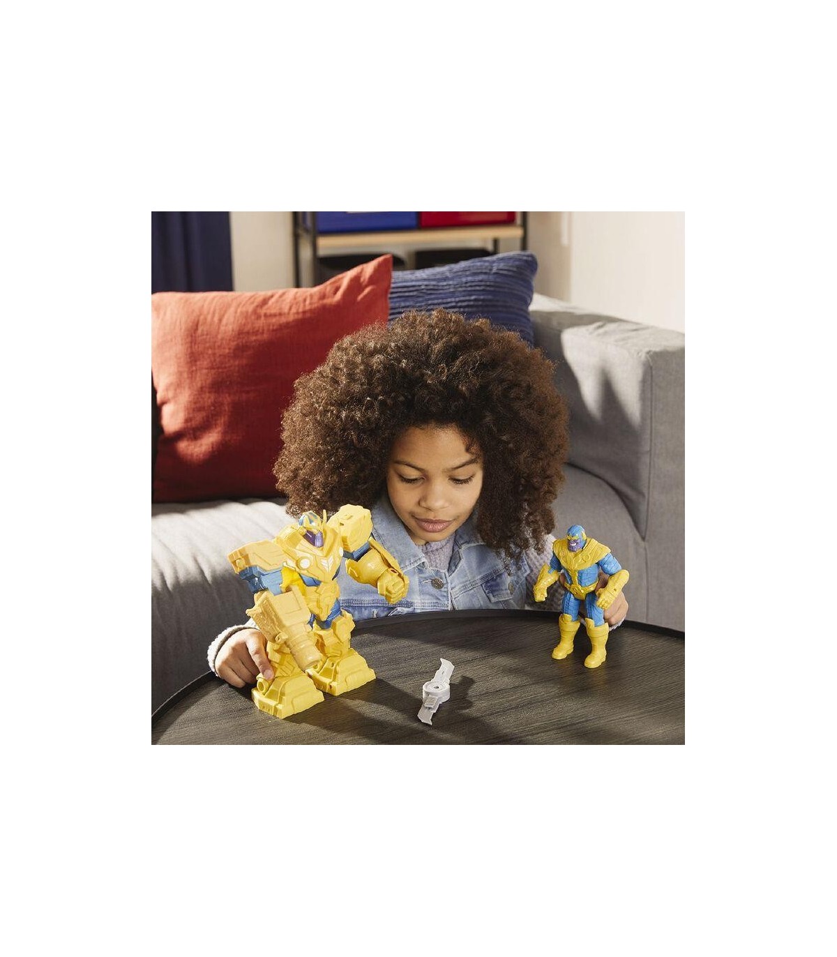 ¡El furioso titán Thanos es imparable con su armadura Mech Strike altamente poderosa! ¡Megamontaje! ¡Ante la abrumante amenaza del poderoso Thanos, los más poderosos héroes de la Tierra han reunido un nuevo conjunto de poderosas herramientas! ¡Estos increíbles megatrajes son la mejor esperanza del planeta contra los males aparentemente insuperables! Súmate a la aventura de armaduras con las figuras y los accesorios de Mech Strike. Cada juguete de Mech Strike está inspirado en un personaje diferente del universo de Marvel. El fantástico mundo de Marvel incluye a héroes como Iron Man, el Capitán América, Black Panther y Hulk. Esta figura es Thanos, lleva la armadura de batalla infinity mech strike y un arma de doble filo que puedes girar. Está armado y listo para combatir contra los vengadores. La figura mide 17 cm y la super armadura 22cm. Cuenta con detalles premium como el guantelete del infinito. Edad recomendada: + 4 años. No recomendable para menores de 3 años, ya que contiene piezas pequeñas que podrían provocar asfixia en caso de ser ingeridas por el niño/a.
