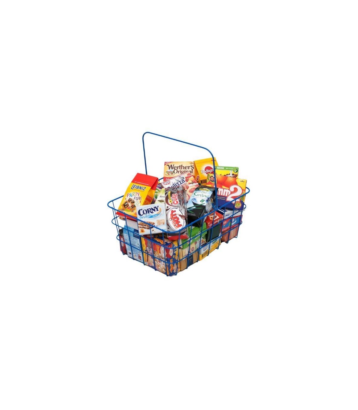 Cesta metálica llena de cajitas de productos para tu cocinita.