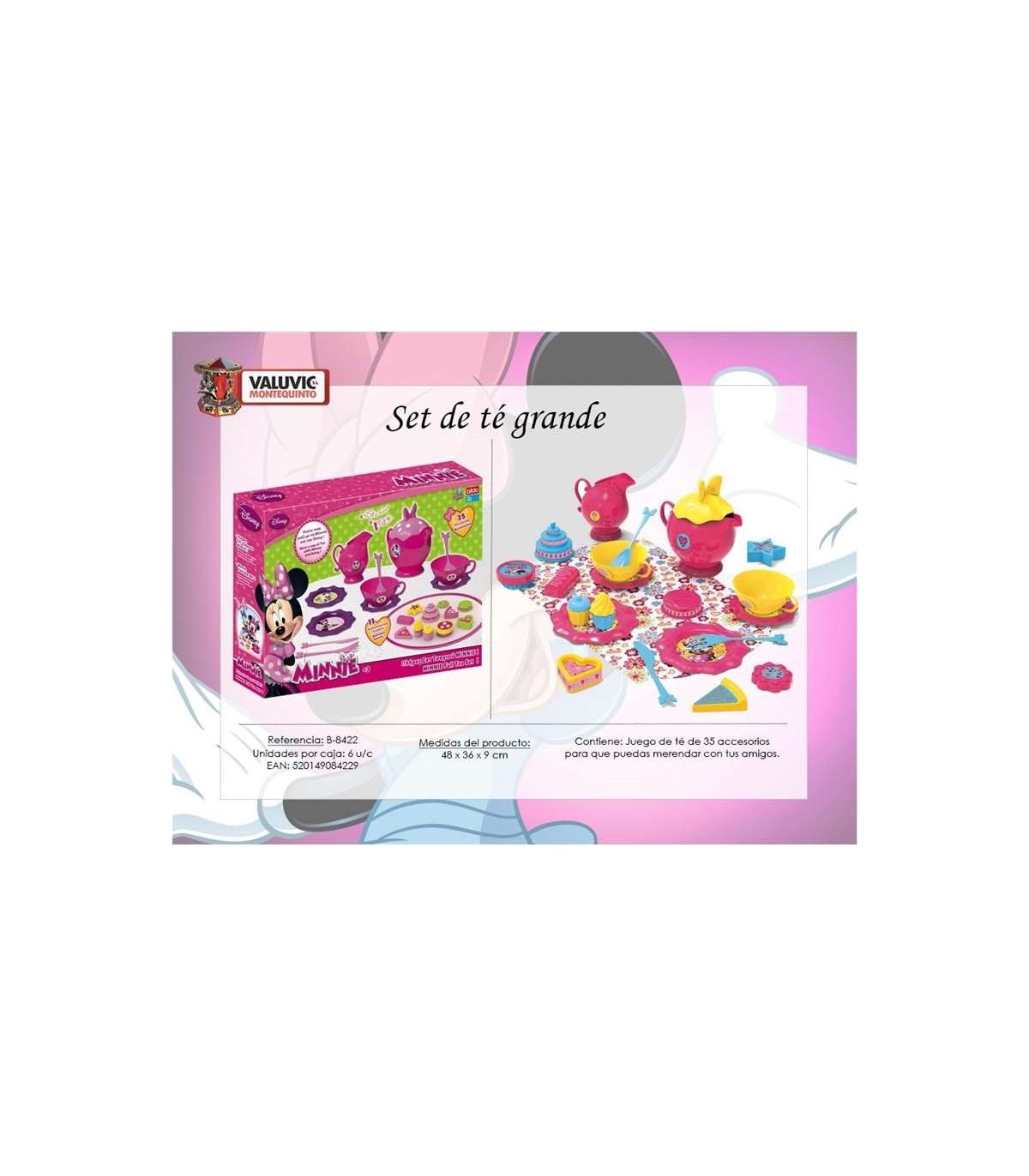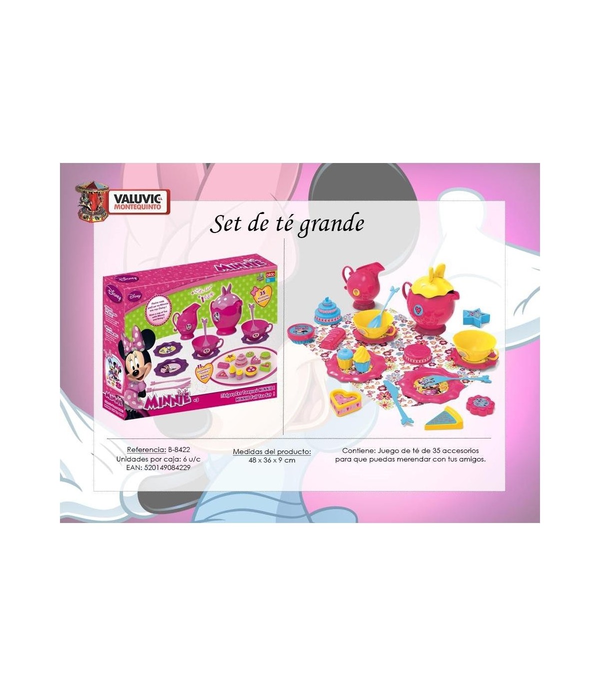 caja con 35 accesorios de cacharritos de cocina. conjunto de te con tetera, tazas, platos y otros accesorios. decorados con minnie mouse