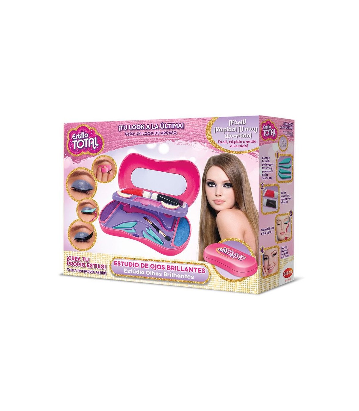 ¿Te imaginas poder diseñar tu propio maquillaje de ojos? ¡Con el Estudio de Ojos Brillantes es posible! Con múltiples instrumentos para lucir un eyeliner perfecto, y herramientas para aplicarte sombras brillantes ¡tu mirada nunca será la misma! ¡Dale color a tus ojos y ve a la última! Contenido del set: Estudio x 1; Anillo sombreador x 2; Sombras de ojo en polvo x 2; Sello delineador x 4; Palito delineador x 1; Tubo de color x 2. Edad recomendada: +8 años. No recomendable para menores de 3 años, ya que contiene piezas pequeñas que podrían provocar asfixia en caso de ser ingeridas por el niño/a.