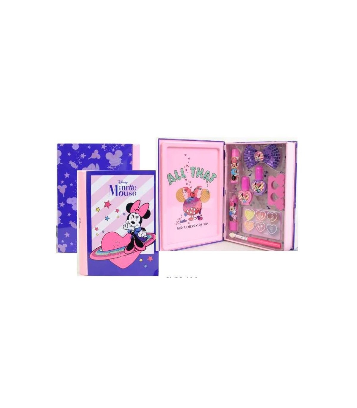 Encuentra tu reino con el mejor libro de belleza. Verás los secretos de maquillaje favoritos de Minnie. Nadie sabrá el tesoro que llevas dentro. Contenido: 6 cremas brillantes, 2 esmaltes de uñas, 1 pintalabios, 1 bálsamo labial, 1 accesorio para el cabello, 1 separador de dedos, 1 aplicador, 1 lata de almacenamiento . Edad recomendada: + 3 años. No recomendable para menores de 3 años, ya que contiene piezas pequeñas que podrían provocar asfixia en caso de ser ingeridas por el niño/a.