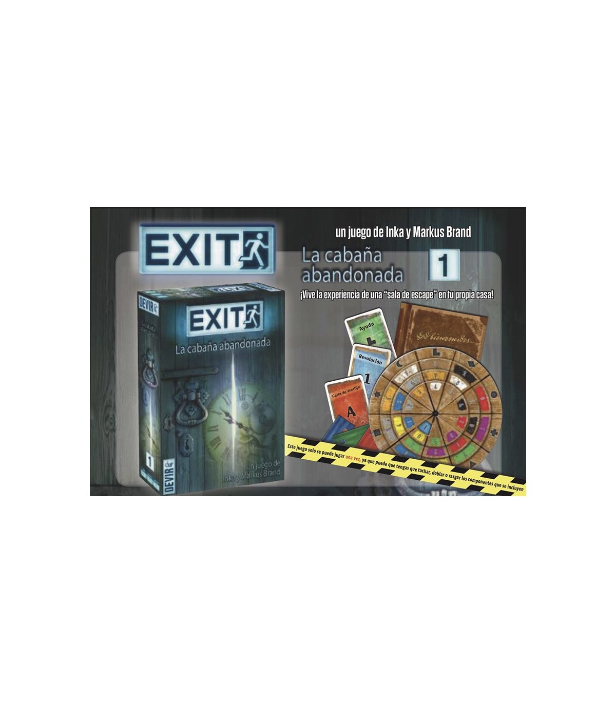 Juego de mesa para darle al coco. El juego comienza con una avería de vuestro coche, lo que os obliga a buscar un refugio donde pasar la noche. Por suerte, encontráis una cabaña abandona en medio del bosque. Pero no todo será tan idílico. Antes de que amanezca os daréis cuenta de que la puerta por la que entrasteis está totalmente cerrada y las ventanas tienen unos barrotes de hierro que os impiden salir. Encima de la mesa: un cuaderno y un curiosos disco… A partir de aquí, ¡a darle a la cabeza!