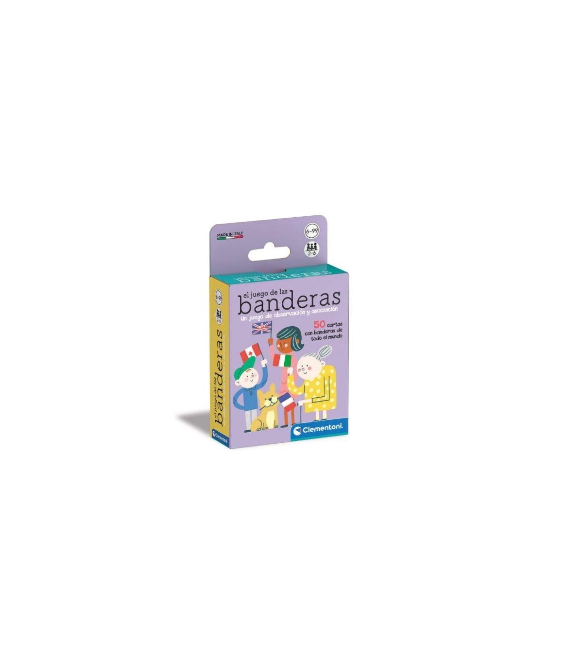 Una baraja de cartas con las banderas, los nombres y el mapa de 50 países, con información sobre los colores, los símbolos y la forma de cada bandera Descubrir todas las banderas del mundo nunca ha sido tan divertido y emocionante El objetivo del juego es ser el más rápido en agarrar las banderas con las características requeridas para ganar el mayor número posible A partir de 6 años