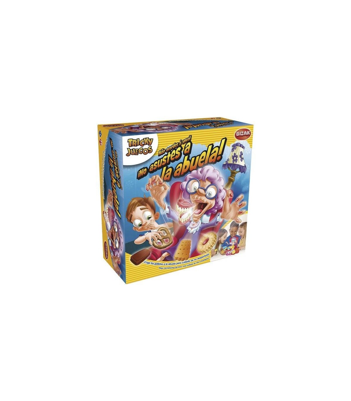 ¡Coge la galleta pero no despiertes a la abuela! A ella le encantan las galletas y ¡quiere todas las galletas! Cuando la abuela duerme ¡es el momento de atacar! Espera tu turno y coge las galletas ... shhh, ¡ten cuidado de no asustarle! Contenido: 1 abuela en silla de ruedas, 1 ruleta, 12 galletas No recomendable para menores de 3 años, ya que contiene piezas pequeñas que podrían provocar asfixia en caso de ser ingeridas por el niño/a.