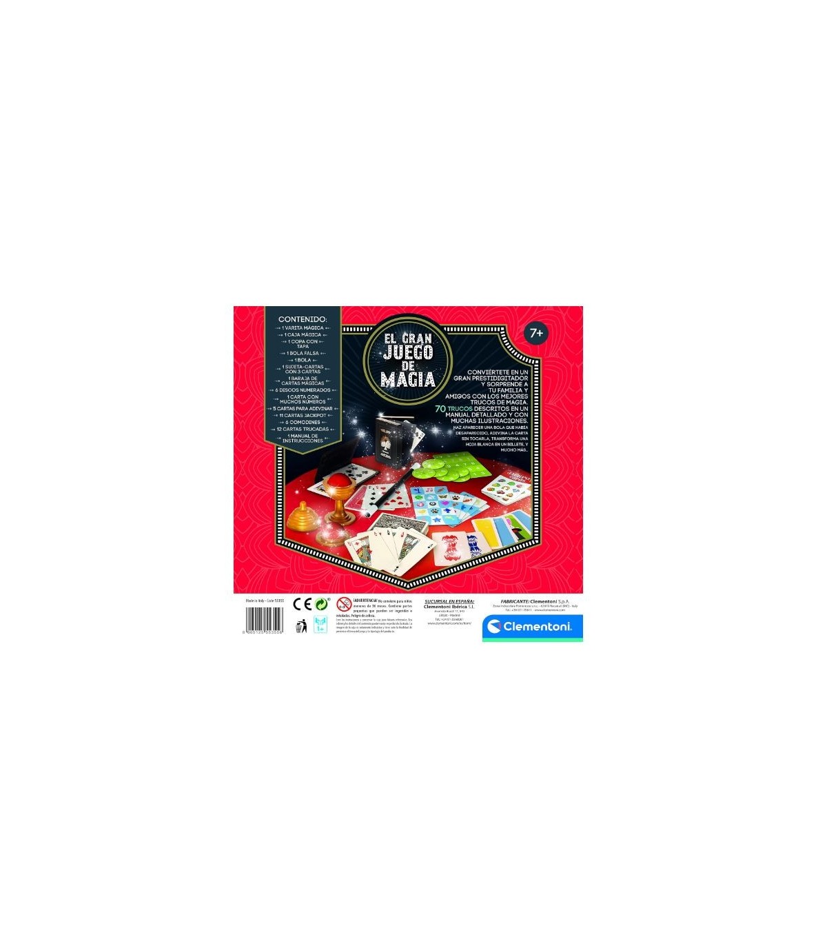 Descubre el poder de la magia con el juego de Clementoni. 70 trucos para los pequeños magos, para que puedan sorprender a sus familiares y amigos con s trucos. Haz desaparecer objetos, adivina cartas, transforma una hoja en billetes.