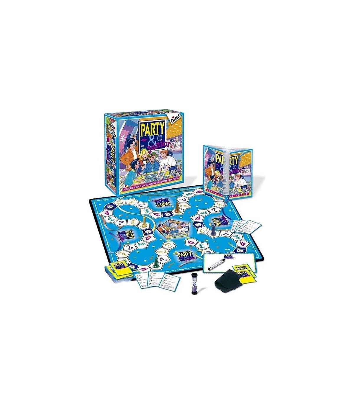 Es la versión del juego de mesa Party & Co para los niños; Para jugar hay que dividirse por equipos y superar distintas pruebas; Ganará el primero en llegar a la casilla final Las cinco pruebas del juego son: trazos y dibujos, música y gestos, tararear y sonidos, la definición y la pregunta y todas las tarjetas tienen dos niveles de dificultad Número de jugadores: máximo 4 equipos de 2 jugadores cada uno Contenido: tablero, 4 peones, un bolígrafo, una pizarra, una gamuza para borrar la pizarra, un reloj de arena, carta de códigos y de pruebas