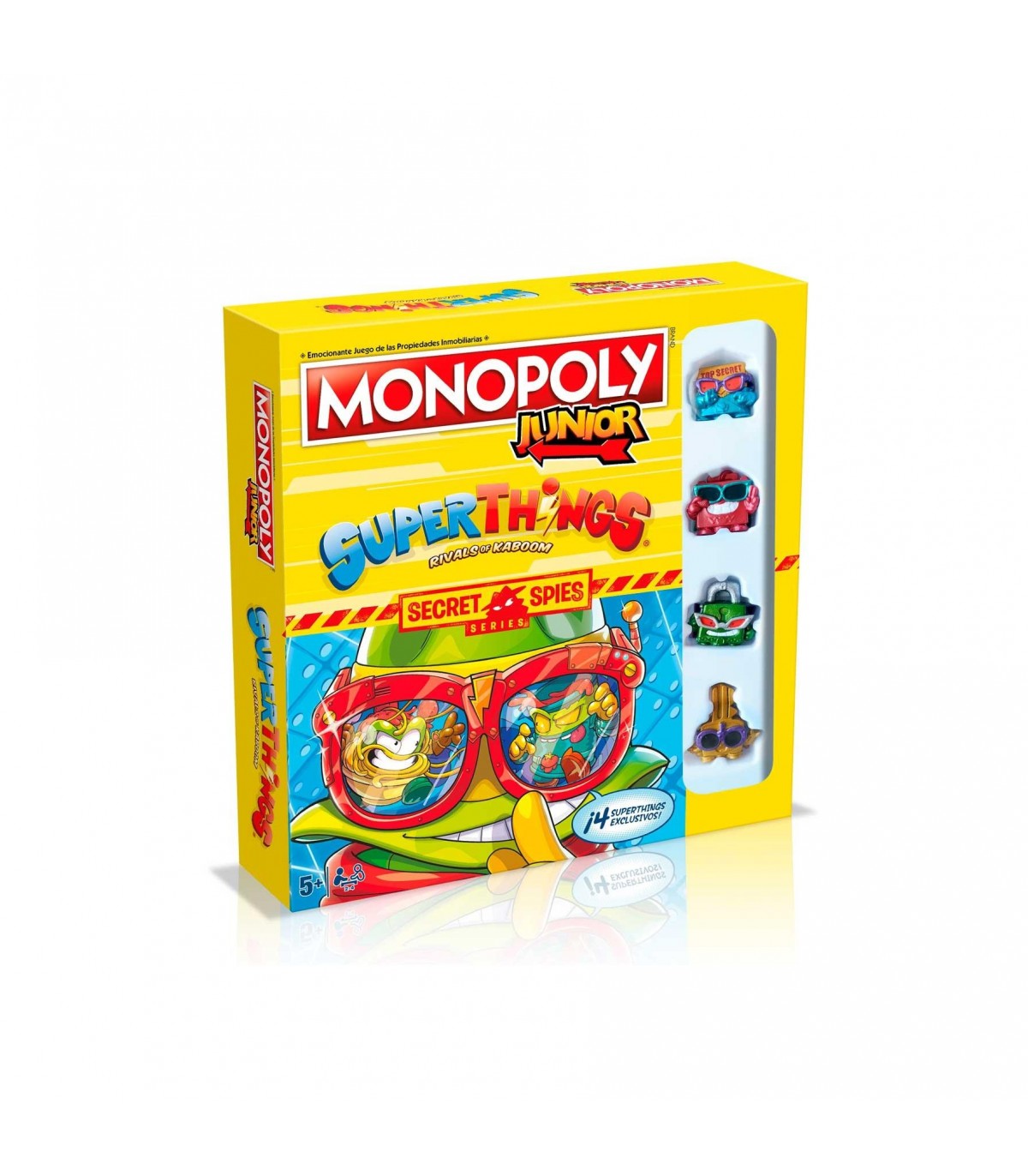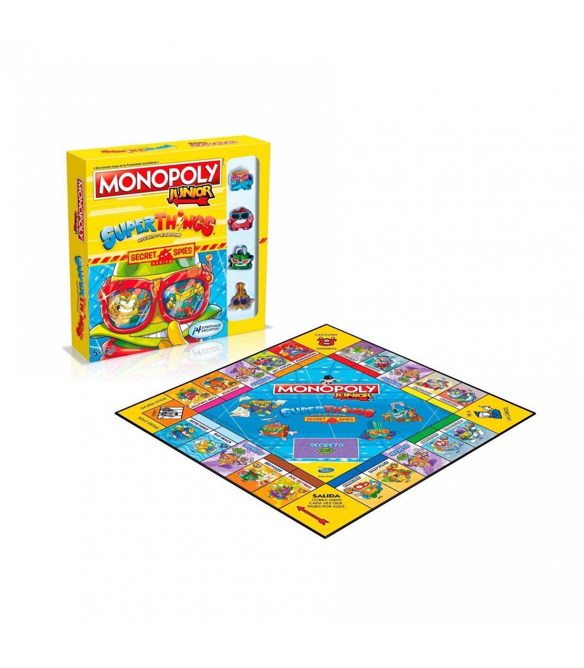 Juega al clásico monopoly, ahora en versión Junior y con el diseño de Superthings, ¡la serie infantil más querida! Además tiene la misma estrategia que el clásico juego, así que permite a los niños ganar dinero de una manera divertida y tener nociones de este tema. Este juego es igual que el Monopoly clásico, pero es rápido, sencillo y fácil para los jugadores más jóvenes. En castellano. De 2 a 4 jugadores. Incluye: Figuras, dados, tablero y billetes de dinero. Se recomienda para + 5 años. No recomendable para menores de 3 años, ya que contiene piezas pequeñas que podrían provocar asfixia en caso de ser ingeridas por el niño/a.
