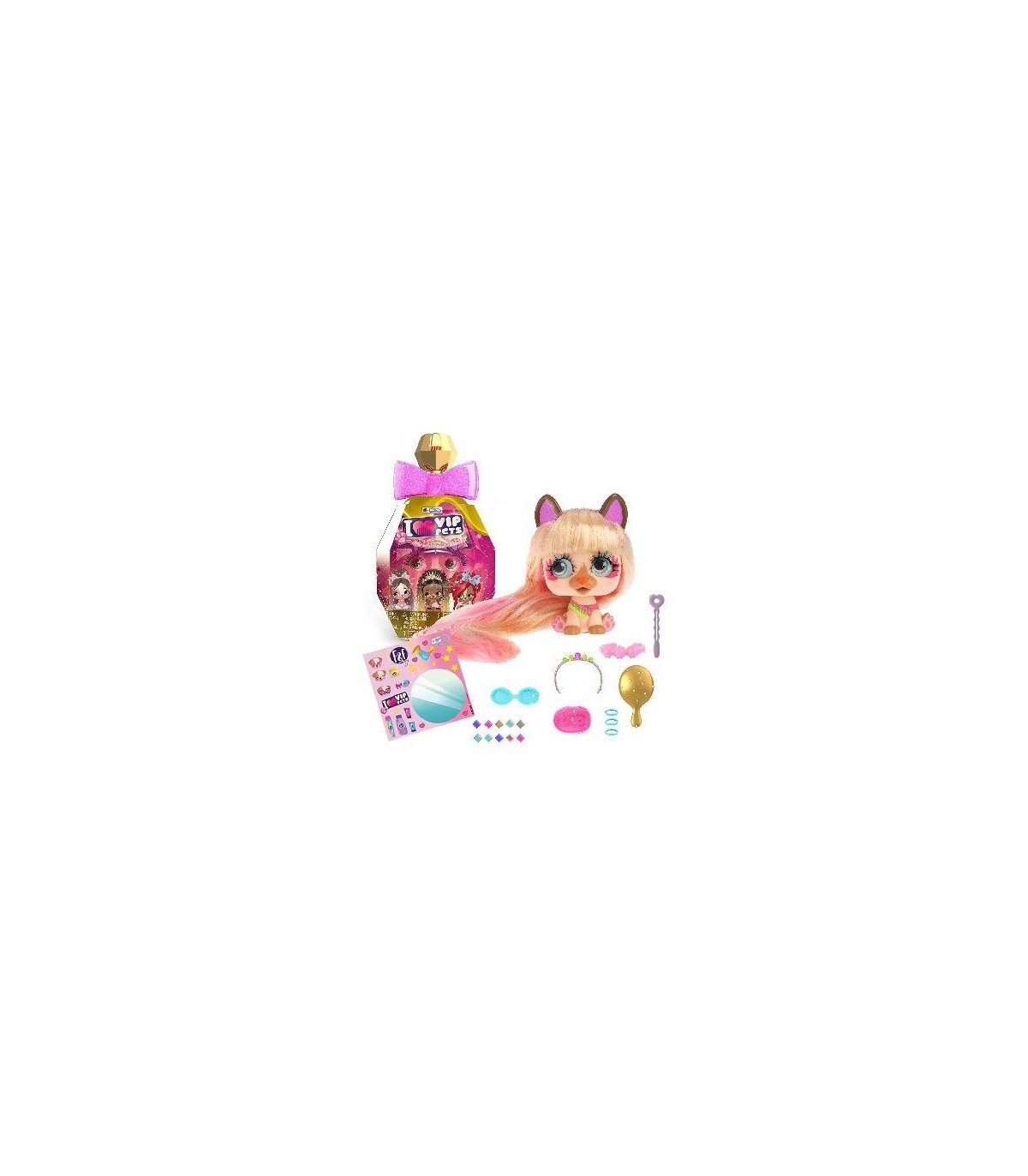 Las Celebripets son las VIP más glamorosas para los niños de 4 a 6 años que les encanta el lujo, el brillo pero sobre todo el oro. Una nueva colección de más de 6 muñecas VIP Pets que parecen celebridades de verdad, con características y accesorios exclusivos. Hay 10 sorpresas incluidas para crear el peinado más glamuroso con un toque dorado. Vienen en un champú dorado que no deja ver al personaje en su interior. Con el dosificador, los peques podrán extraer poco a poco el champú dorado, descubriendo así el personaje sorpresa en su look de incógnito, con las gafas de sol puestas. ¡Las nuevas muñecas incluyen detalles premium como pestañas reales, ojos de cristal y cabello dorado! En su interior se incluye un tocador con espejo y cajones para guardar accesorios. ¡Y no os perdáis el personaje exclusivo de Kelly Cherry, el jurado del Talent Show en la web series en YouTube, con más accesorios y características exclusivas! (es aleatorio, no se puede solicitar este modelo) ¡Una colección especial para crear peinados VIP y sentirse como un auténtico peluquero! No recomendable para menores de 3 años, ya que contiene piezas pequeñas que podrían provocar asfixia en caso de ser ingeridas por el niño/a.