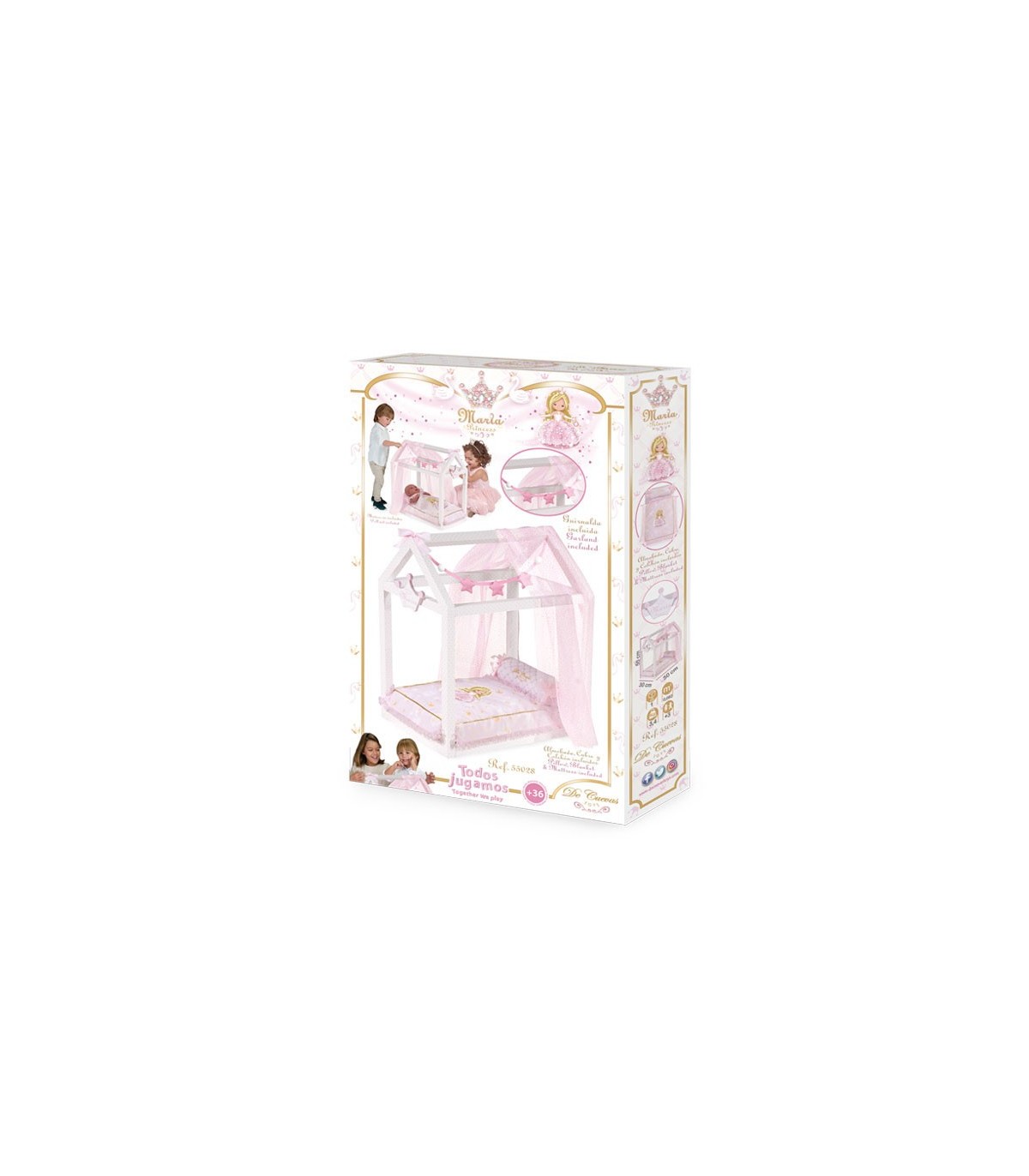 bonita casita de madera para que tus muñecos puedan dormir comodamente, incluye ropita decorada en tonos rosas