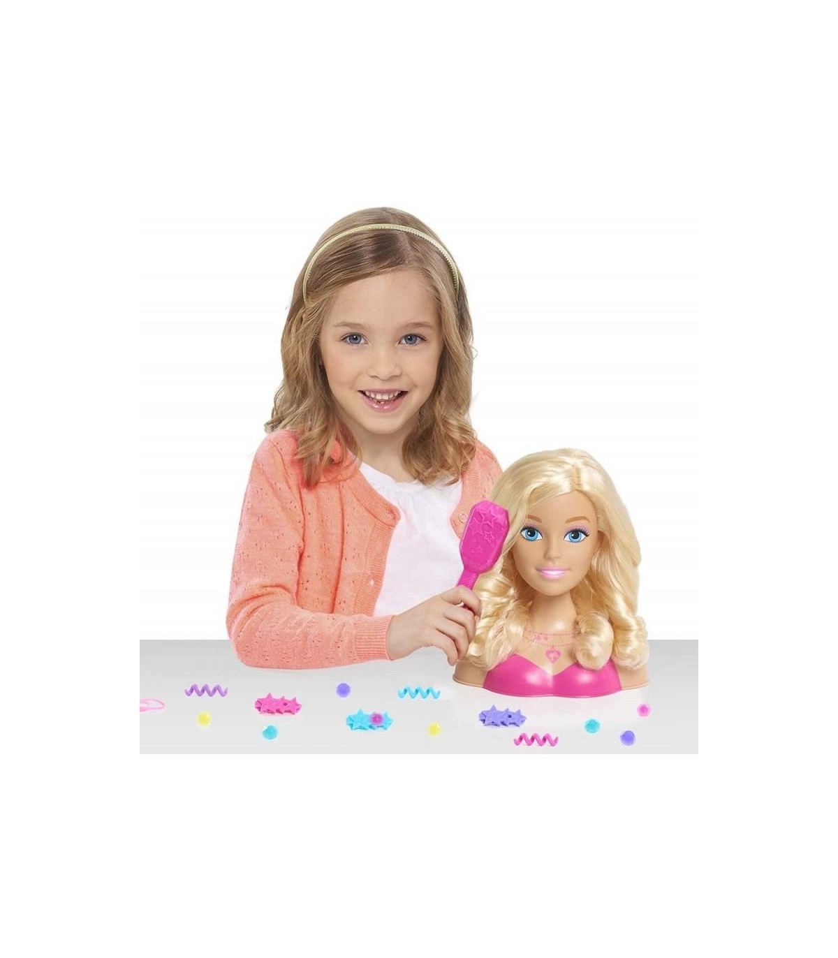 pequeño busto de barbie con muchos accesorios para peinar y decorar
