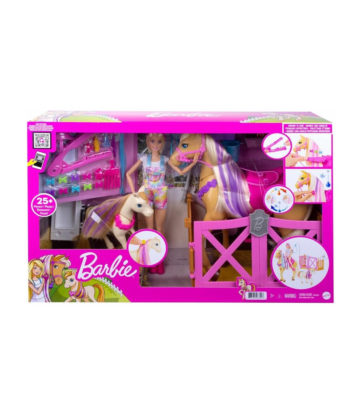 ¡Cumple el sueño de tu niño o niña de tener dos caballos de mascota con este set de Barbie!