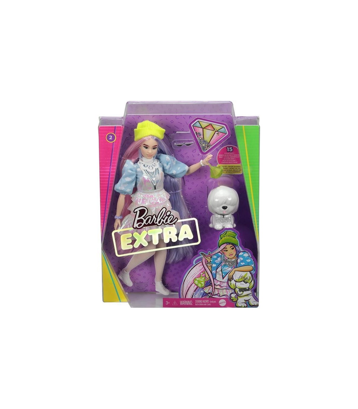 Las muñecas Barbie® Extra se atreven con la última moda y con los colores más vivos. ¡Y tienen las ideas muy claras! Cada muñeca Barbie® tiene su propio estilo exclusivo, muy alegre y ligeramente exagerado. Y sus mascotas —cada una de ellas con una diferente, pero todas adorables— también desprenden toneladas de personalidad. Con las muñecas Barbie® Extra, las niñas y niños podrán explorar la autoexpresión a través del estilo y ofrecen una emocionante experiencia de juego de moda y estilo con muñecas articulables. Podrán divertirse con una moda repleta de brillos, ositos de gominola, emoticonos e increíbles peinados, aportando un toque EXTRA dondequiera que vayan.