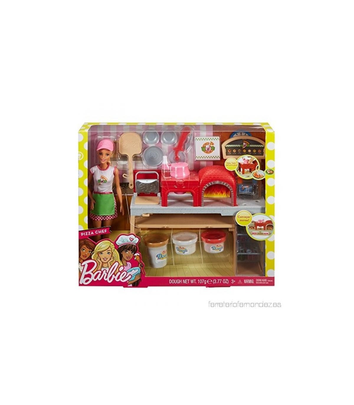 la estupenda cocina horno de tu muñeca barbie, realiza las pizzas mas sabrosas en plastilina con este completo juego. incluye muñeca