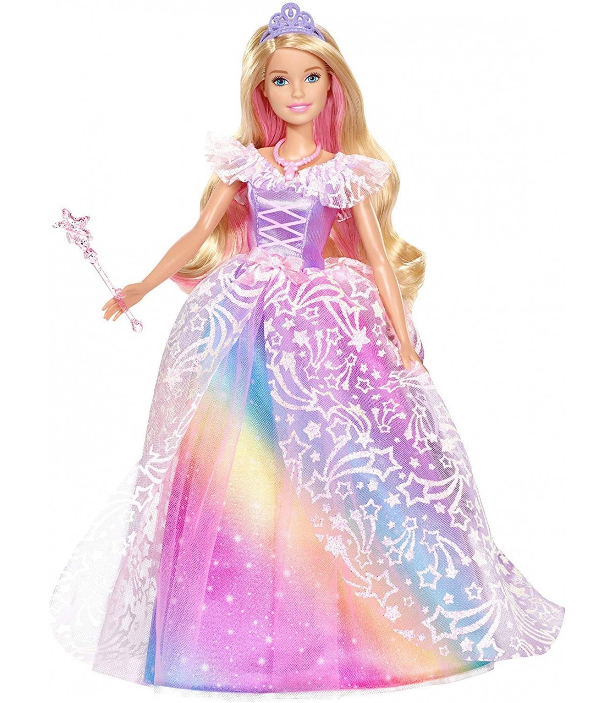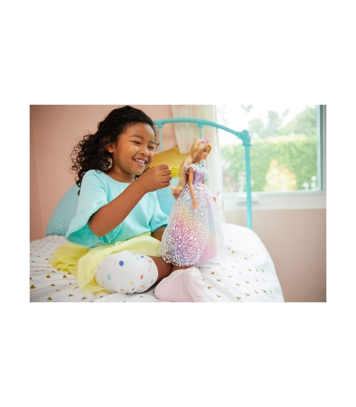 La Princesa baile real de Barbie Dreamtopia da rienda suelta a la creatividad para vivir una noche de fantasía: un vestido de princesa, unos zapatos de princesa, sus mechas rosas y 5 accesorios
