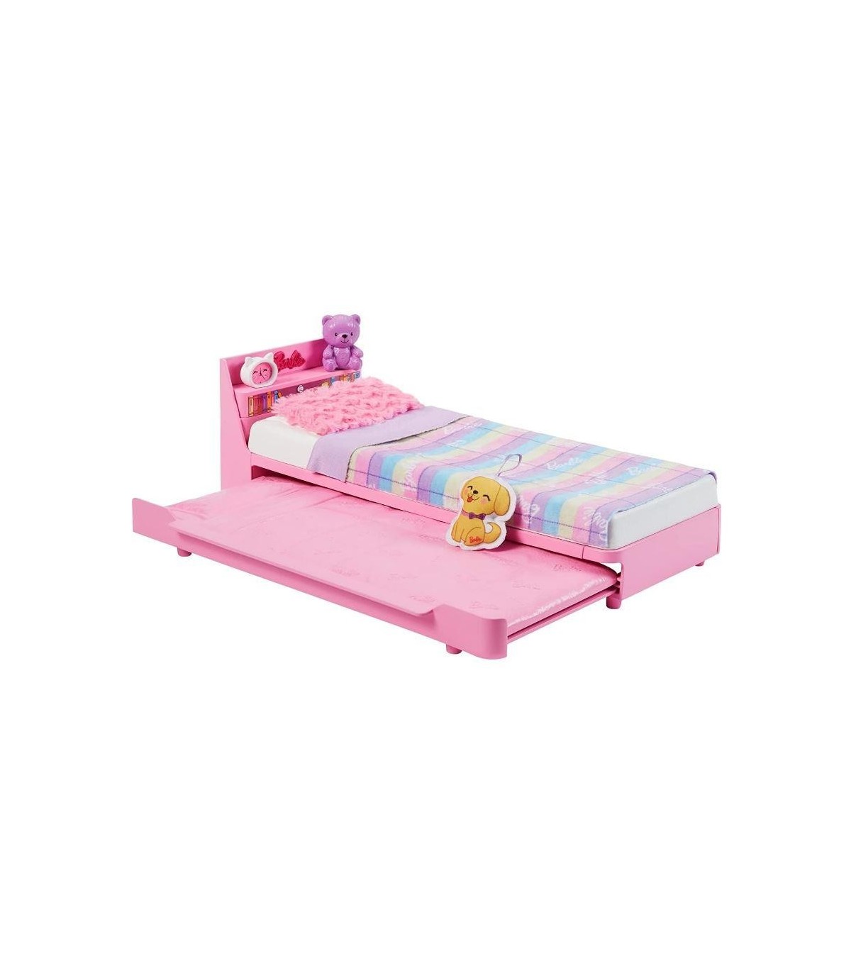 En la cama caben dos muñecas My First Barbie de 34,3 cm (no incluidas). Guarda el colchón adicional o sácalo cuando invites a un amigo a una fiesta de pijamas.