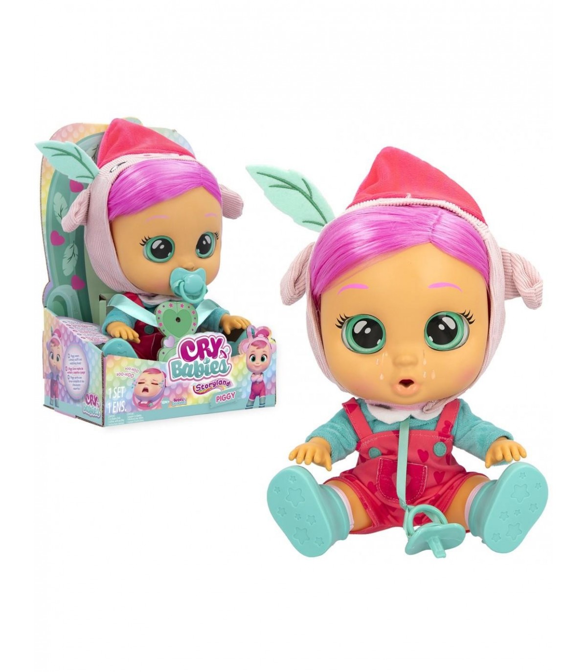 ¡Descubre al Bebé Llorón Piggy que llega desde Storyland! ¡Piggy llega de uno de los cuentos más conocidos! Tus hijos e hijas quedarán deslumbrados y tú estarás encantado de regalar una bonita muñeca bebé llorón que derrama lágrimas de verdad cuando le sacan el chupete y se tranquiliza en cuanto se lo devuelven. Además las muñecas Storyland traen novedades: Piggy tiene pelo de verdad, ojos de cristal y una cara más suave y mejorada. Además, tiene un peso más ligero y, por primera vez, ¡lleva ropa de verdad y zapatitos a juego!