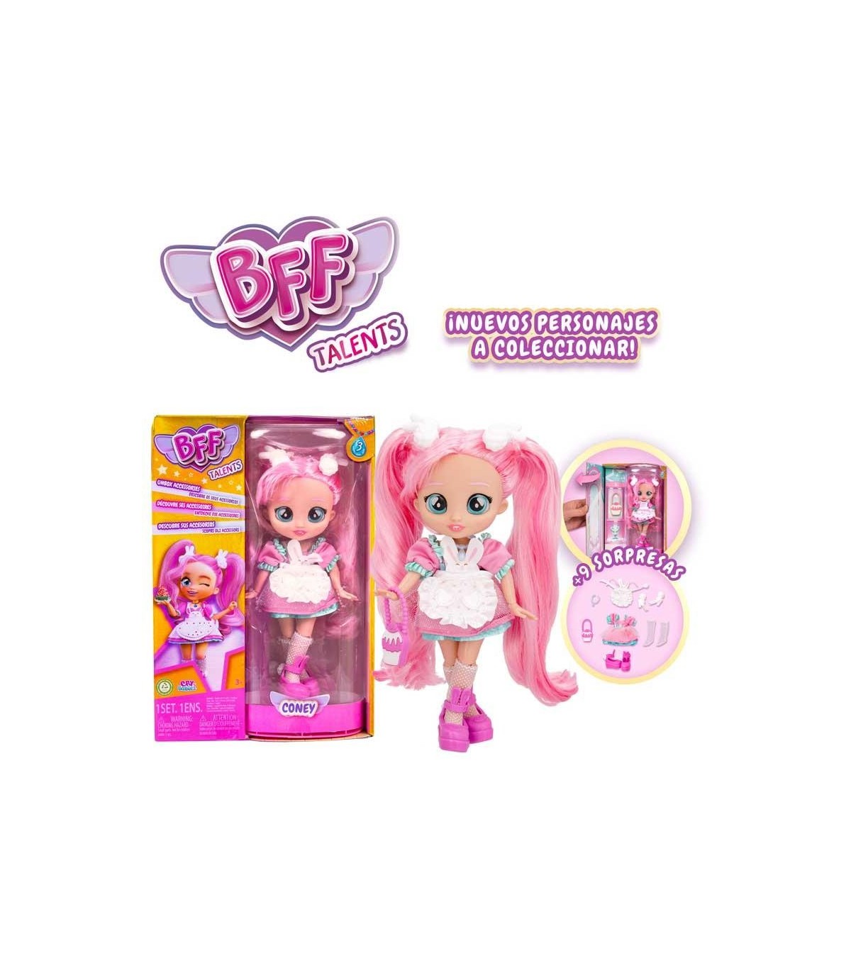 Descubre el serie de animación BFF by Bebés Llorones. Abre la caja y descubre su armario con más de 9 sorpresas: una prenda de ropa, un bolso, un accesorio para el pelo, un par de zapatos y patines, un par de calcetines y un collar