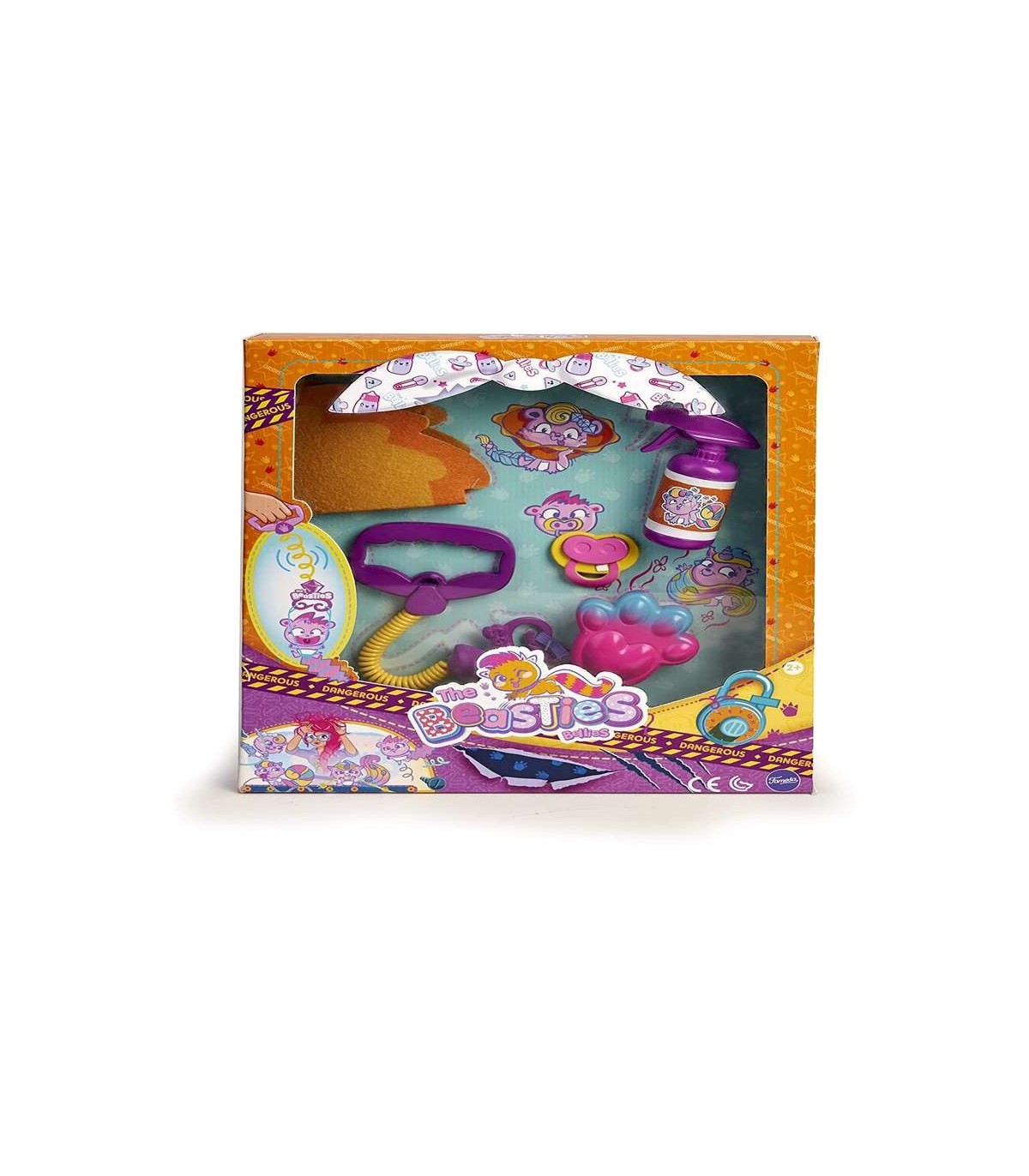 Los Beasties son los mejores amigos de los Bellies, les encanta quitarles las cosas a los Bellies y son aún más traviesos El Beasties Kit es el kit más completo para que los niños puedan mantener a sus Beasties tranquilos y seguros Tendrán que consultar la Beastipedia para saber que cuidado aplicarles Lleva incluido un chupete, una correa para poder atraparlos, un peine para peinarles, un protector y el insecticida para mantenerlos a salvo de las pulgas