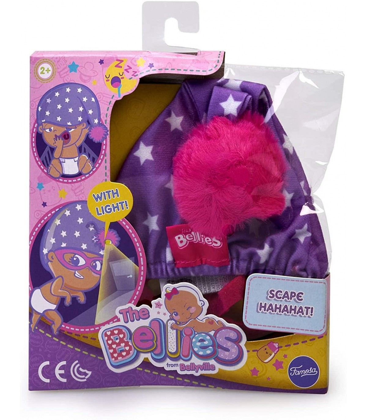 Scape hahahat es el gorro para dormir de los bellies Tiene una luz secreta en el pompón que se ilumina en la oscuridad y una máscara para los ojos debajo del gorrito Válido para los bellies de 17 cm (no apto para mini bellies) Funciona con 3 pilas lr41 / 1.5v