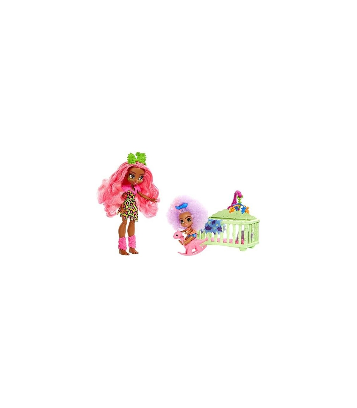 ¡Conoce a Cave Club, un grupo de amigos prehistóricos muy revoltosos y adelantados a su época. Con las muñecas y conjuntos de juego de Cave Club, los niños volverán al pasado y descubrirán historias salvajes con sus personajes prehistóricos favoritos. Fernessa, la primera canguro de la historia, adora cuidar a los pequeños Cave Tots, pero tiene que estar siempre pendiente de Furrah. La muñeca Fernessa tiene todo lo que necesita para ser la mejor canguro, incluida una cuna con un adorable móvil de dinosaurios que da vueltas de verdad, ¡dale un giro a los sueños más dulces. Cuando termine la hora de la siesta, coloca a Furrah en el caballosaurio-mecedora y dale un empujoncito para que se balancee. Los accesorios más pequeños permiten que los niños inventen todo tipo de historias; desde la hora de comer hasta la de dormir, y las dos muñecas de Cave Club con pelo llamativo y toques de neón inspirarán aventuras salvajes. Los aventureros a partir de 4 años podrán coleccionar las muñecas y juguetes de Cave Club para crear historias con toda la pandilla. Se venden por separado y están sujetas a disponibilidad. Los colores y la decoración pueden ser distintos de los mostrados.
