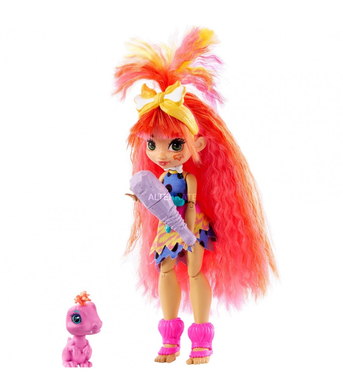 ¡Conoce a Cave Club™, un grupo de amigos prehistóricos muy revoltosos y adelantados a su época! Los muñecos Cave Club™ dan rienda suelta a unas alucinantes aventuras con sus divertidos peinados, sus looks de neón brillante y sus adorables y feroces dinosaurios como mascotas. A Emberly™ se le da muy bien inventar cosas y está lista para descubrir nuevos horizontes con un vestido de lunares y un práctico cinturón en el que puede llevar consigo sus inventos. Cave Club muñeca Emberly incluye su amigo velociraptor, Flaire™, además de un peine prehistórico y un brillante garrote que se transforma en linterna. Con codos, muñecas y rodillas articulados, ¡los niños podrán ayudarla a escapar de un dinosaurio T-Red, a esquivar un géiser de lava o a inventar la primera linterna! Lleva tu imaginación a los albores de la civilización y descubre nuevas historias salvajes con los muñecos y juguetes de Cave Club™. Los niños a partir de 4 años pueden recrear aventuras con su amigo prehistórico favorito, ¡o bien pueden coleccionarlos todos para hacer historia con todo el grupo! Se venden por separado y están sujetos a disponibilidad. Los colores y la decoración pueden ser distintos de los mostrados.
