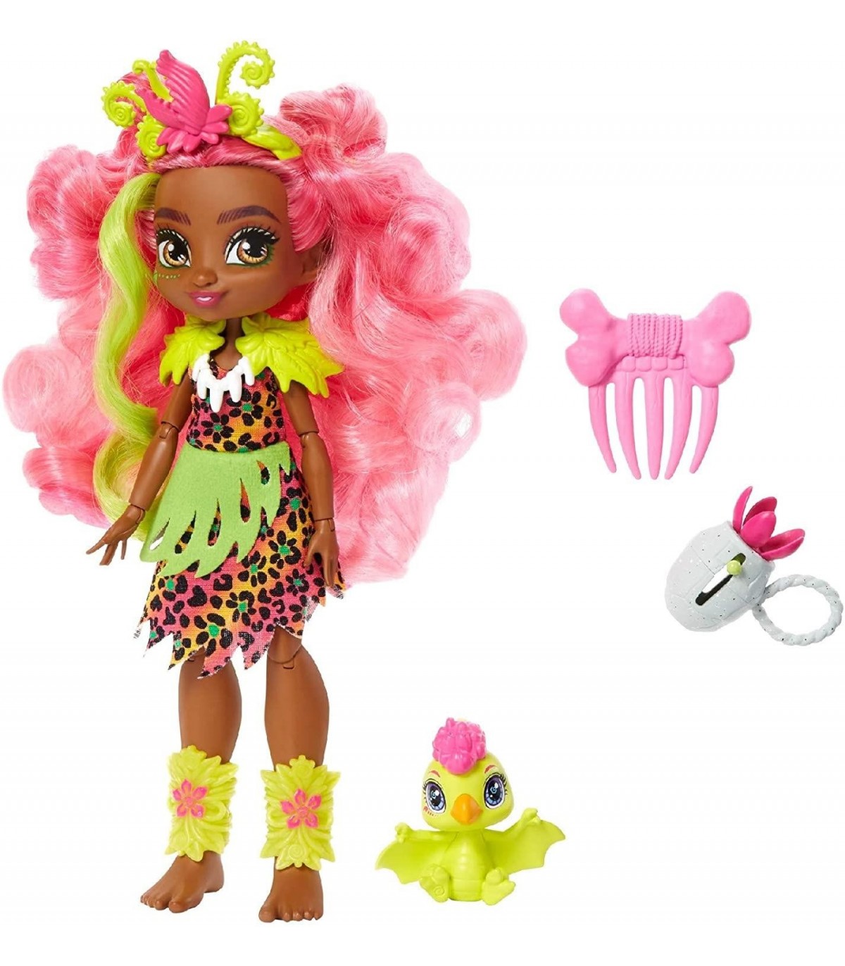 ¡Conoce a Cave Club™, un grupo de amigos prehistóricos muy revoltosos y adelantados a su época! Los muñecos Cave Club™ dan rienda suelta a unas alucinantes aventuras con sus divertidos peinados, sus looks de neón brillante y sus adorables y feroces dinosaurios como mascotas. ¡A Fernessa™ le encantan las plantas, los animales y estudiar el entorno natural! Cave Club muñeca Fernessa está lista para descubrir el mundo vestida en un vestido brillante con un estampado feroz y detalles naturales, como un tocado de venus atrapamoscas. Incluye su pterodáctilo, Ptilly™, además de un peine prehistórico y una bolsa sorpresa: ¡presiona la palanca para ver cómo «florece»! Con codos, muñecas y rodillas articulados, los niños podrán ayudarla a escapar de un dinosaurio T-Red, a esquivar un géiser de lava o a plantar el primer jardín ecológico del mundo. ¡Lleva tu imaginación a los albores de la civilización y descubre nuevas historias salvajes con los muñecos y juguetes de Cave Club™! Los niños a partir de 4 años pueden recrear aventuras con su amigo prehistórico favorito, o bien pueden coleccionarlos todos para hacer historia con todo el grupo. Se venden por separado y están sujetos a disponibilidad. Los colores y la decoración pueden ser distintos de los mostrados.