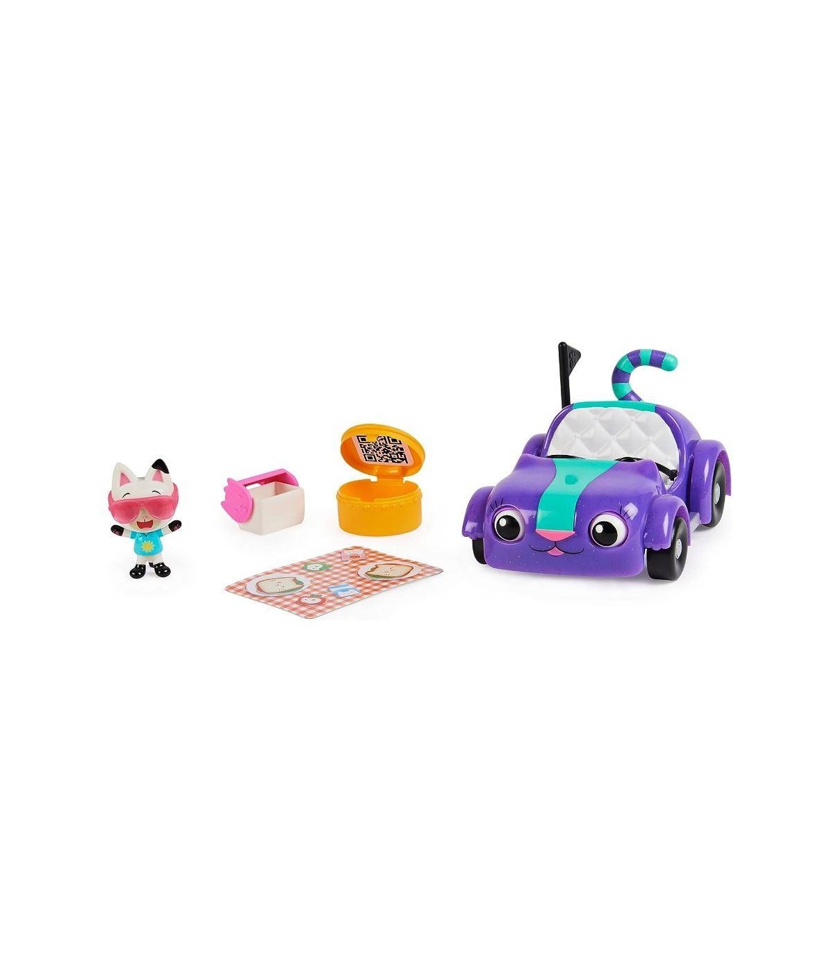 Vehículo Carlita con figura coleccionable de Pandy Patitas y 2 accesorios Pon en marcha el motor y lánzate a una gatástica aventura con el conjunto de pícnic de Carlita y Pandy Patitas de Gabby´s Dollhouse. Carlita tiene el mismo aspecto alegre, mitad gata mitad coche, que el personaje que tanto te gusta de la serie y puede albergar en sus asientos a Pandy Patitas y a otro personaje de Gabby´s Dollhouse de tu colección (las figuras de juguete adicionales se venden por separado). Carlita cobra vida, moviendo la cola de izquierda a derecha, a medida que la empujas. Presiona su capó para que pestañee o la parte izquierda y derecha para que mire hacia los lados. A partir de 3 años.