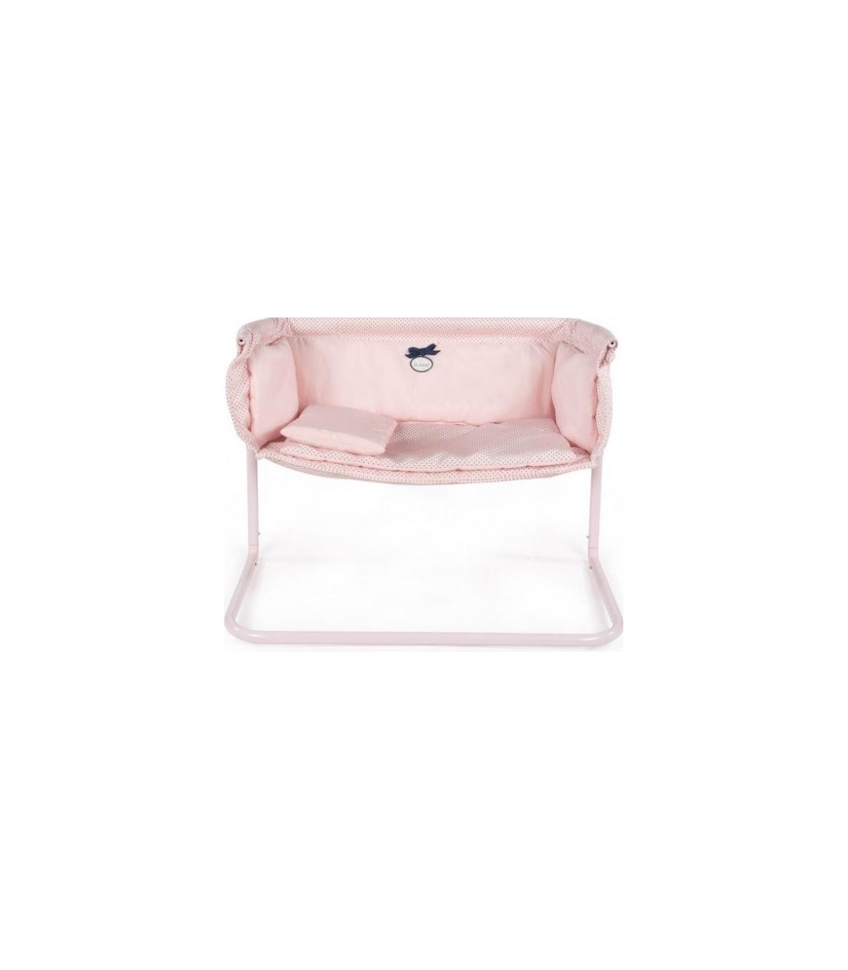 Con esta cuna podrás compartir la cama con tu muñeca favorita. Se coloca al lado de tu cama y se sujeta en el colchón. Incluye: protector, edredón y almohada. Ideal para muñecas de 36 a 52 cms. A partir de los 3 años.
