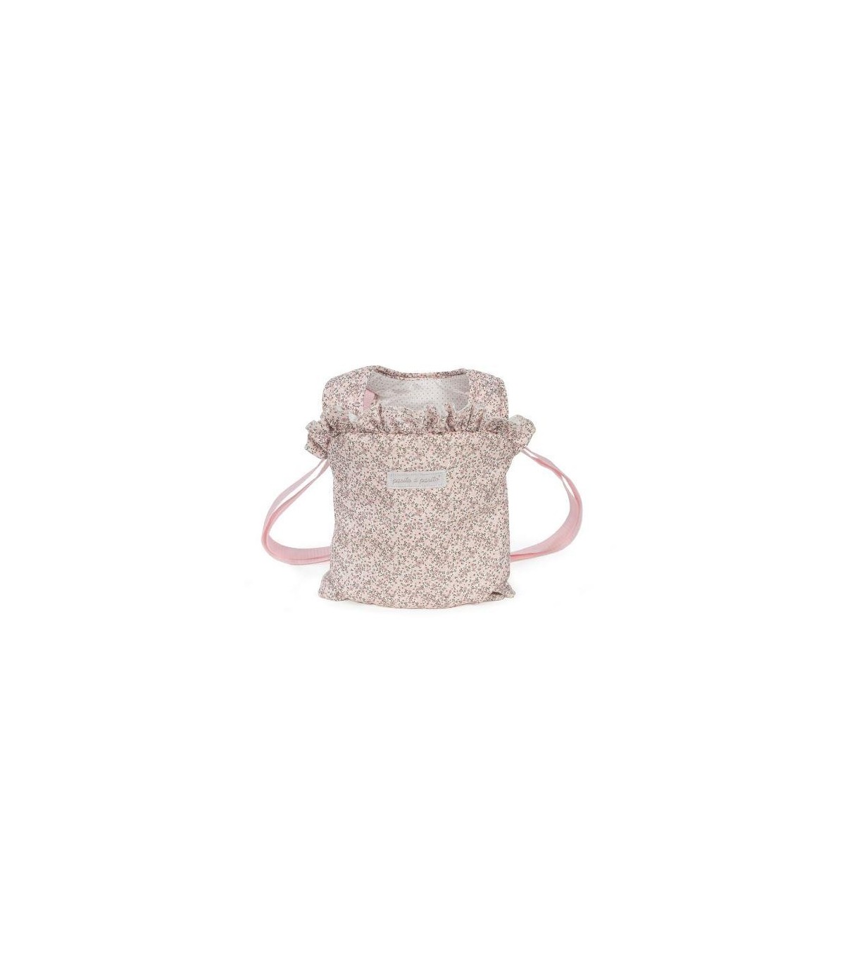 Lleva a tu muñeca donde quieras con la mochila portabebés Lili con estampado de flores rosa. Ideal para muñecas de 30 a 46 cm. A partir de 2 años. Juguete de imitación.