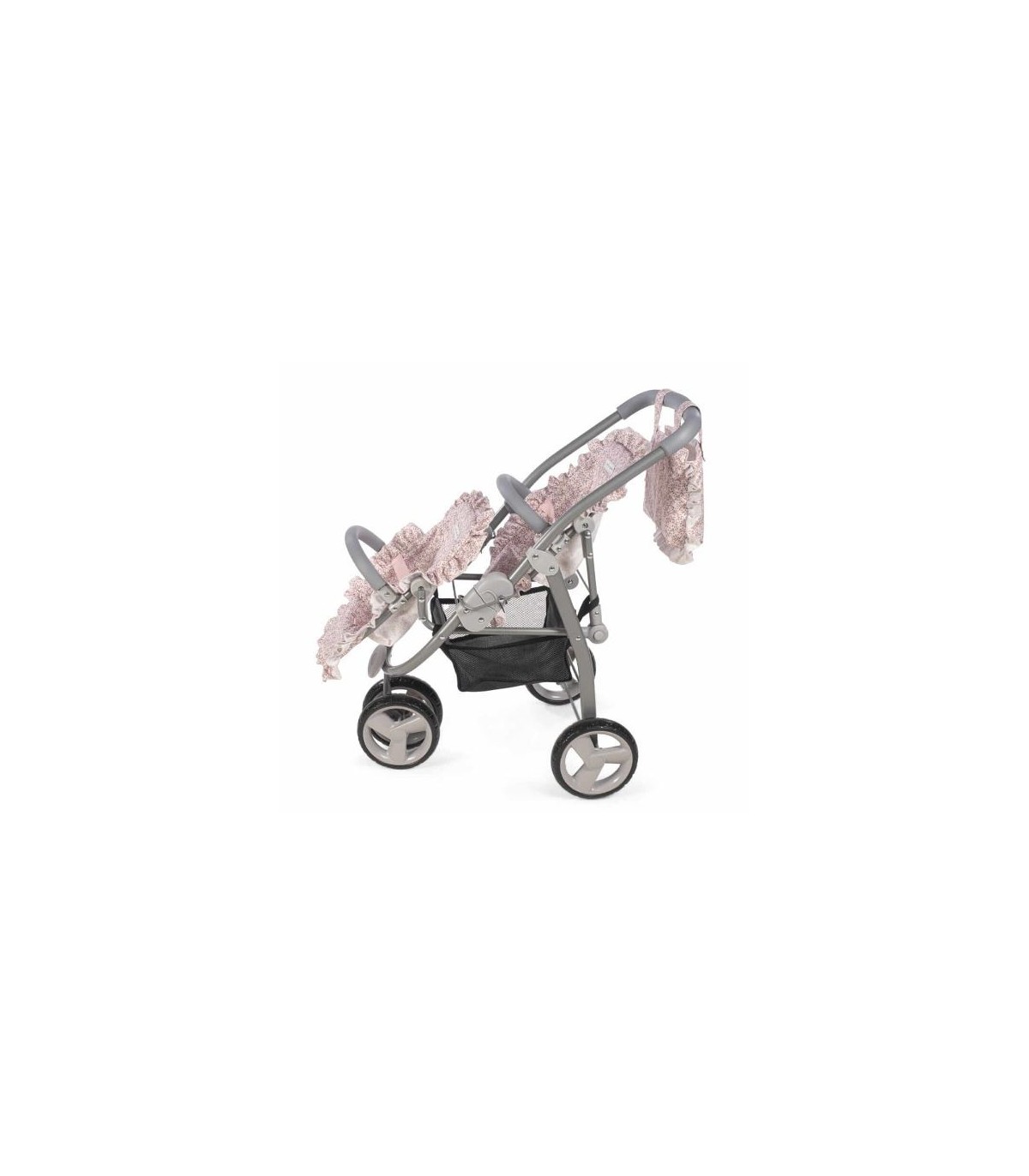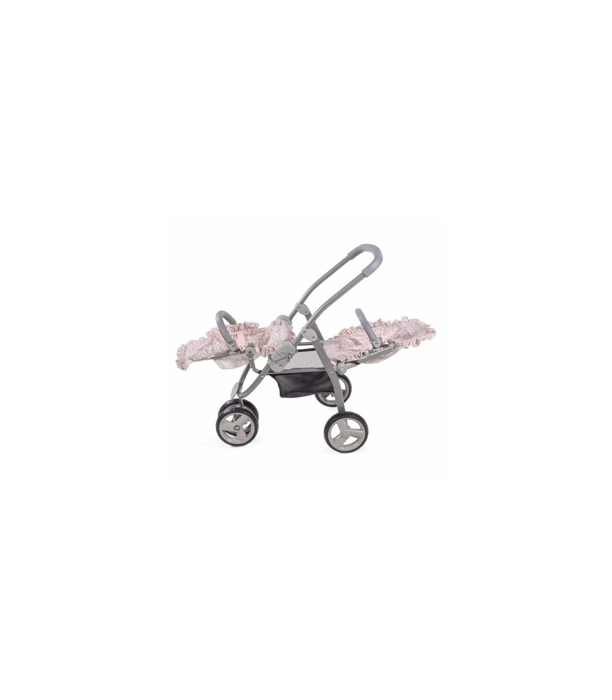 Pasea a tus muñecas de dos en dos con el cochecito de gemelos Lili, puedes usarlo de los 3 a los 8 años. Ideal para muñecas de 30 a 42 cm. Combina tela azul gris melangé con flores rosas. Incluye bolsa canastilla y cesto de la compra para llevar todos los accesorios de las muñecas. Plegable, ocupa poco espacio, fácil montaje. Acabados de calidad, solida y estable. Juguete de imitación.