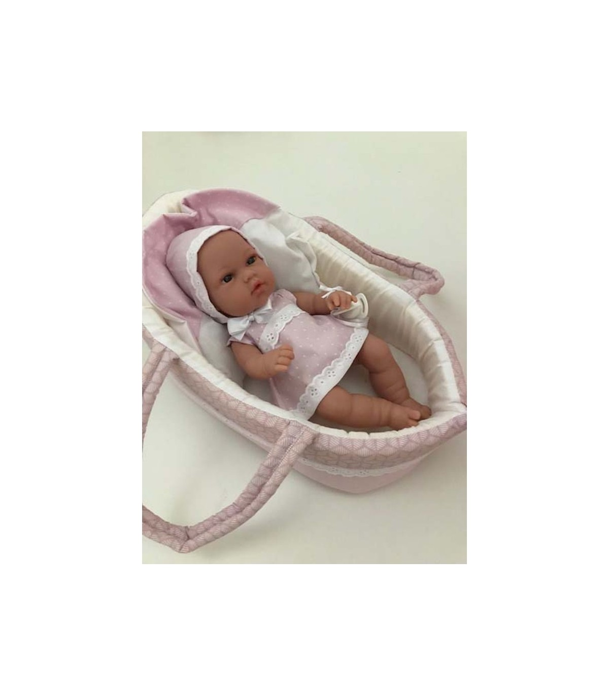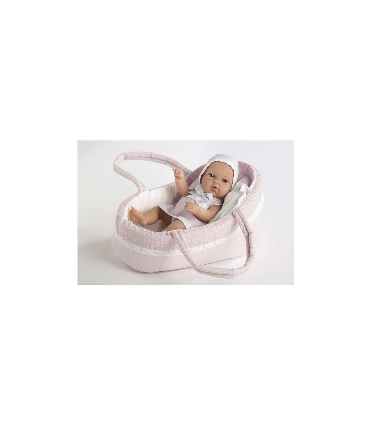 Bebe de 33 cm con Capazo Exclusiva Toy Planet, Es una muñeca bebé que forma parte de la distinguida colección de muñecas Arias. Estas muñecas son realmente adorables por los detalles bien cuidados de su expresión. Este bebé muy suave y delicado y a niñas y niños mayores de tres años les gustará tenerlo entre sus brazos.
