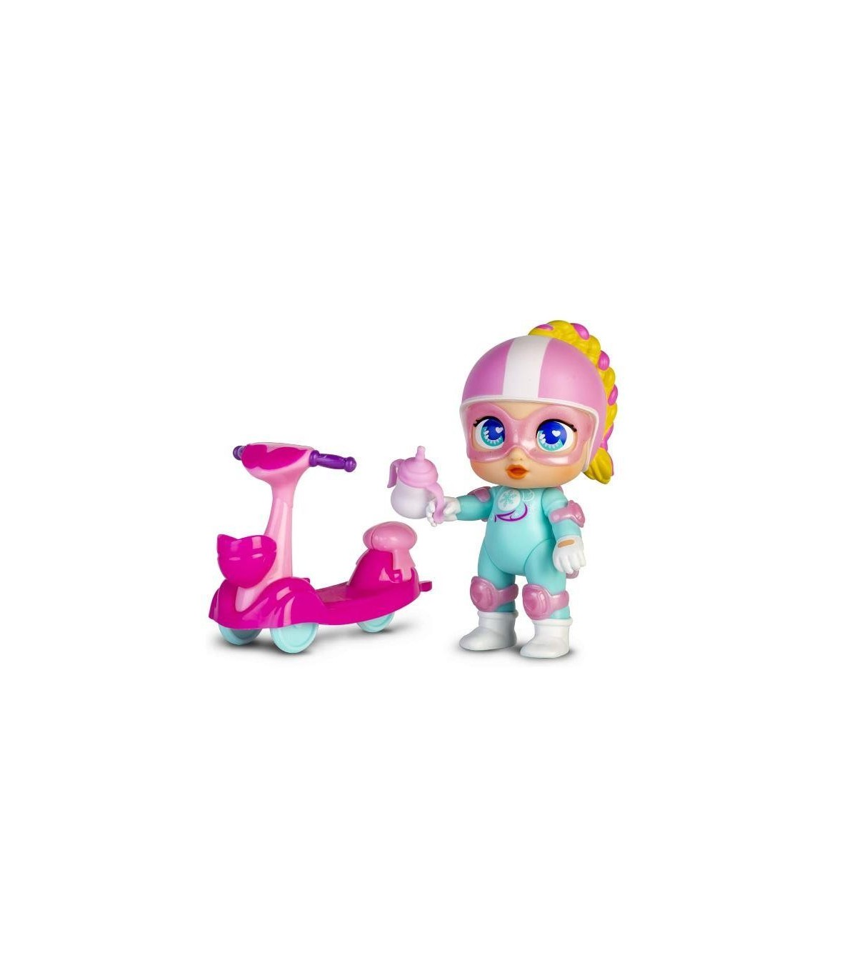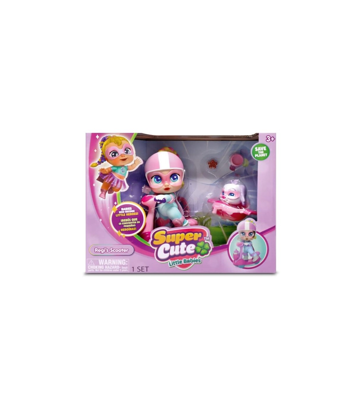 Mini Super Cute Regi y su Scooter con sidecar para poder pasear a su perrito Snowball también incluido en el pack. Regi lleva un outfit súper genial con un toque deportivo. Mide 12 cm de altura El pack incluye mascara y capas extraíbles para Regi & Snowball Además de accesorios como casco, rodilleras, coderas de patinaje,botellita en el manillar ¡Las ruedas de la scooter se convierten en aletas!
